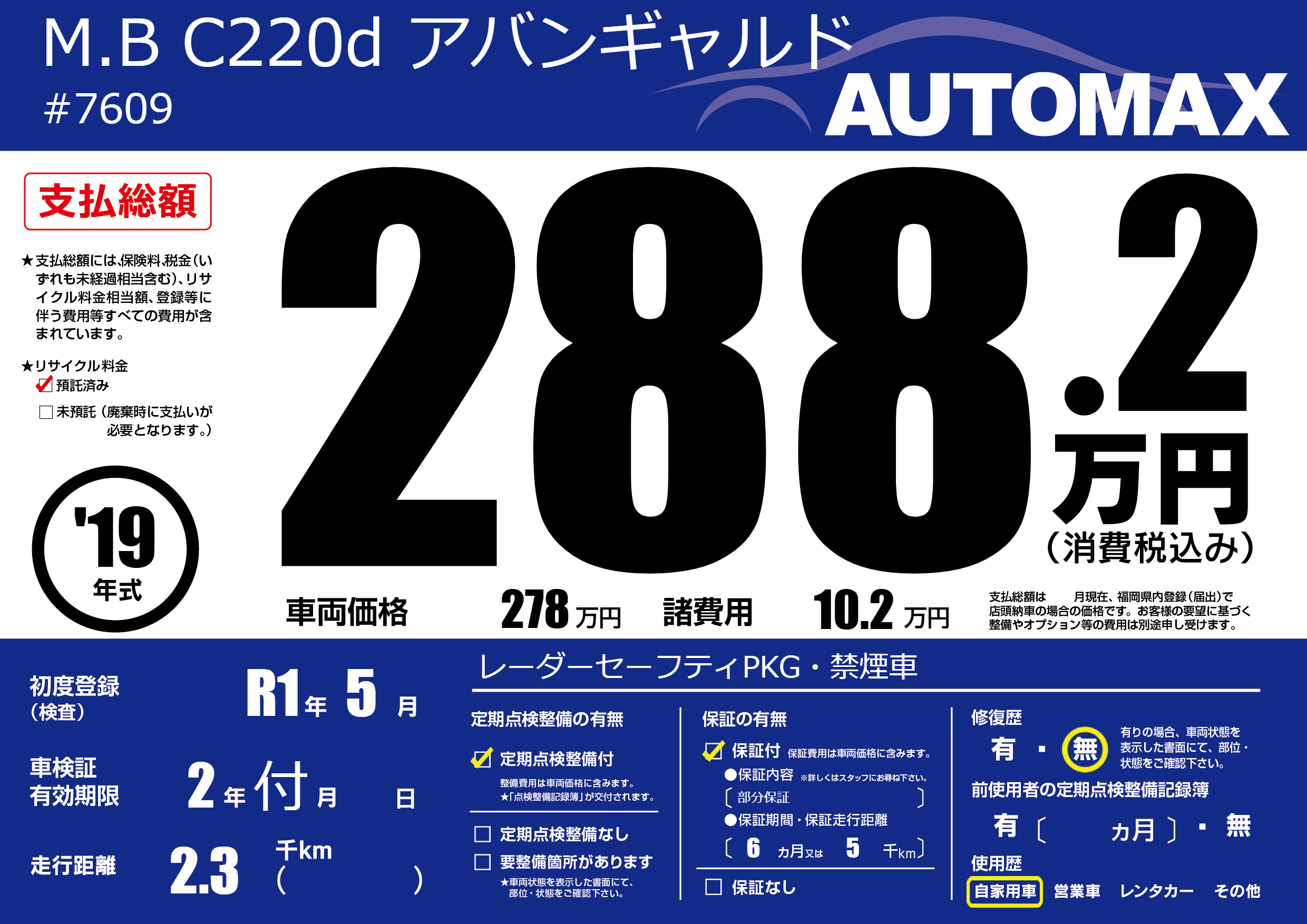 | 車名 | M.B C220d アバンギャルド | グレード ミッション 排気量 |