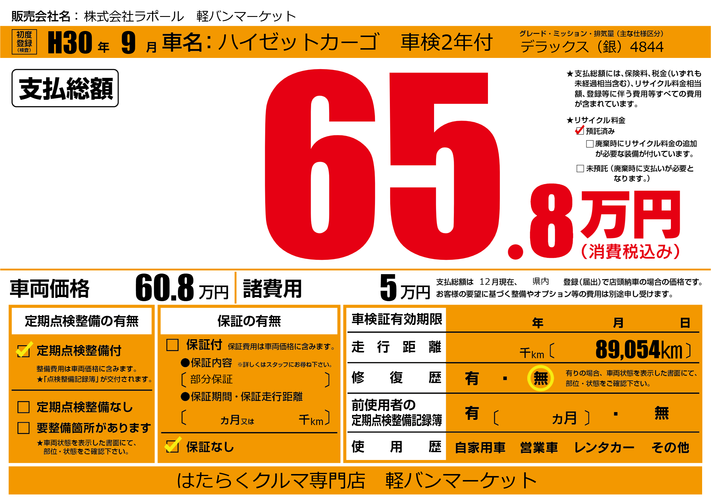 株式会社ラポール 軽バンマーケットの展示車