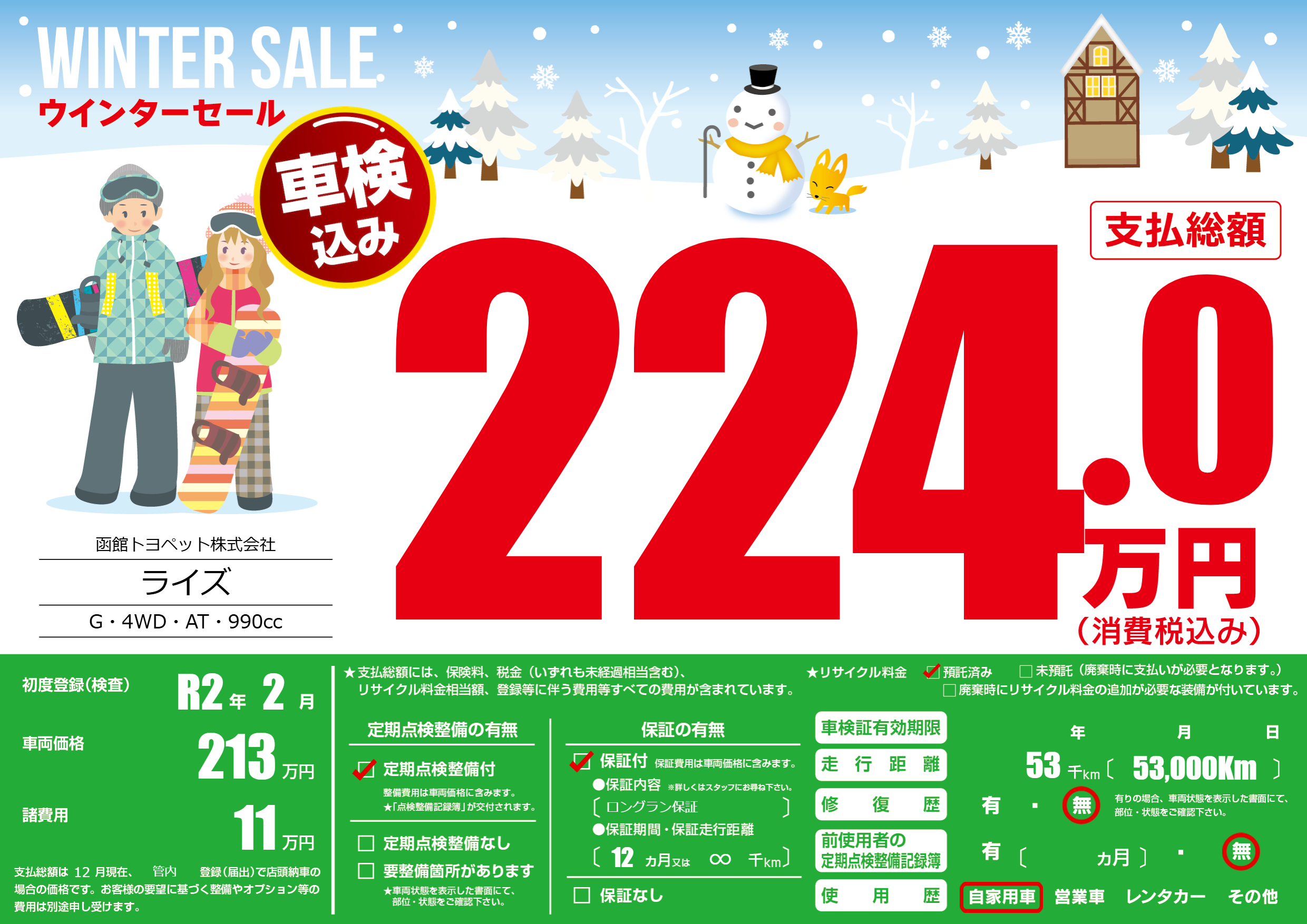 | 定期点検整備 | 定期点検整備あり | ||