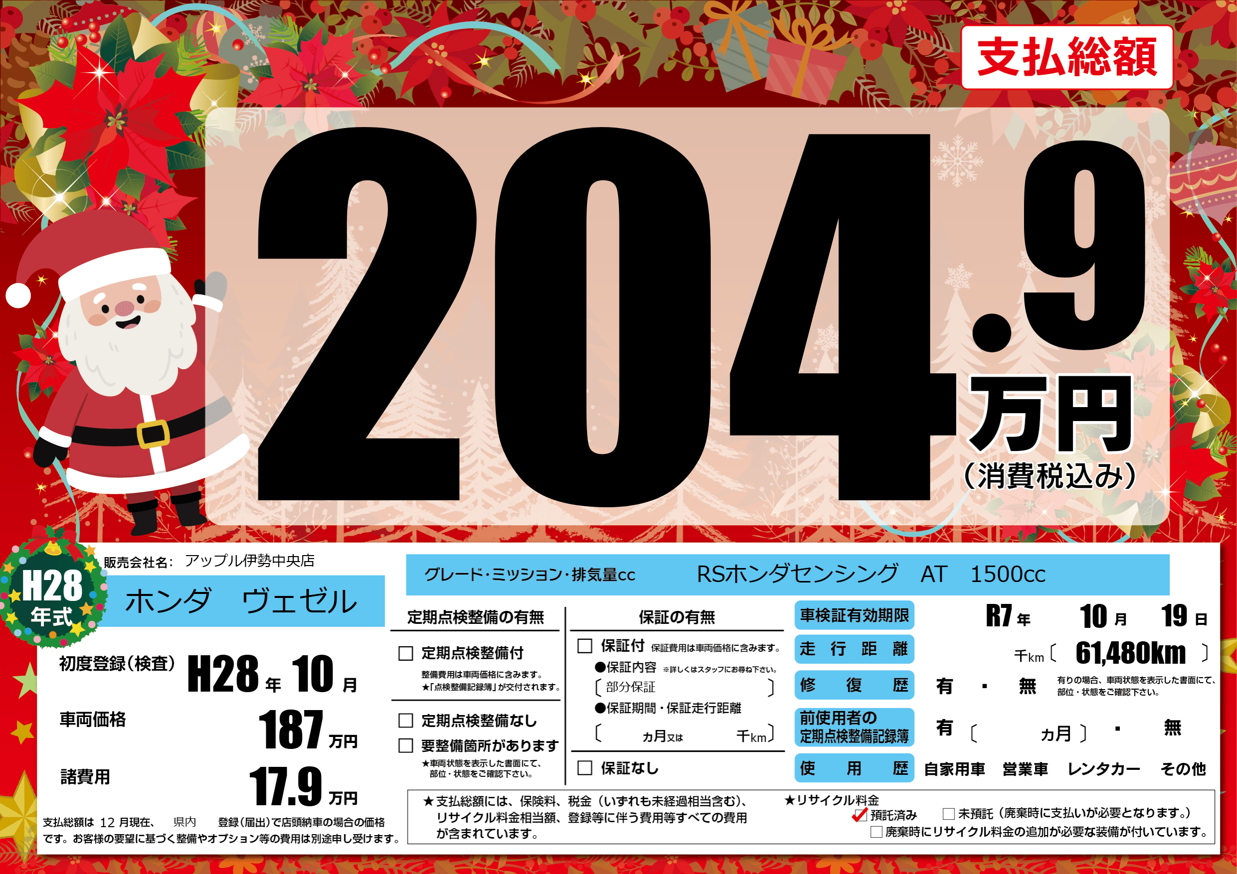 | 車名 | ホンダ ヴェゼル | グレード ミッション 排気量 |