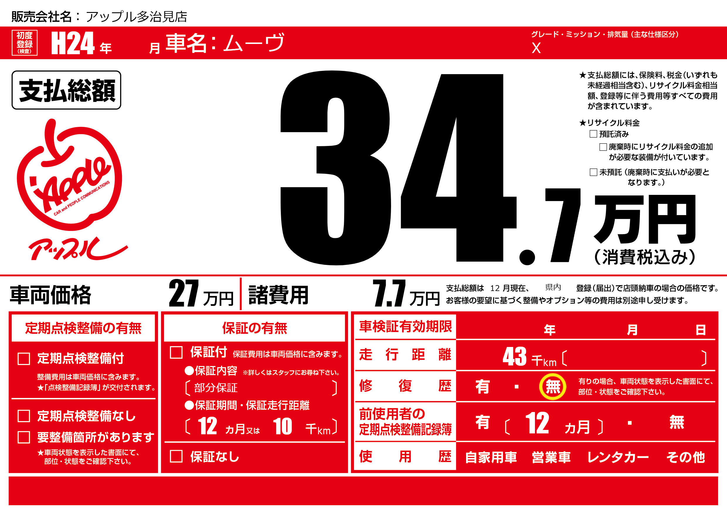 | 初年度登録 | H24年 | ||