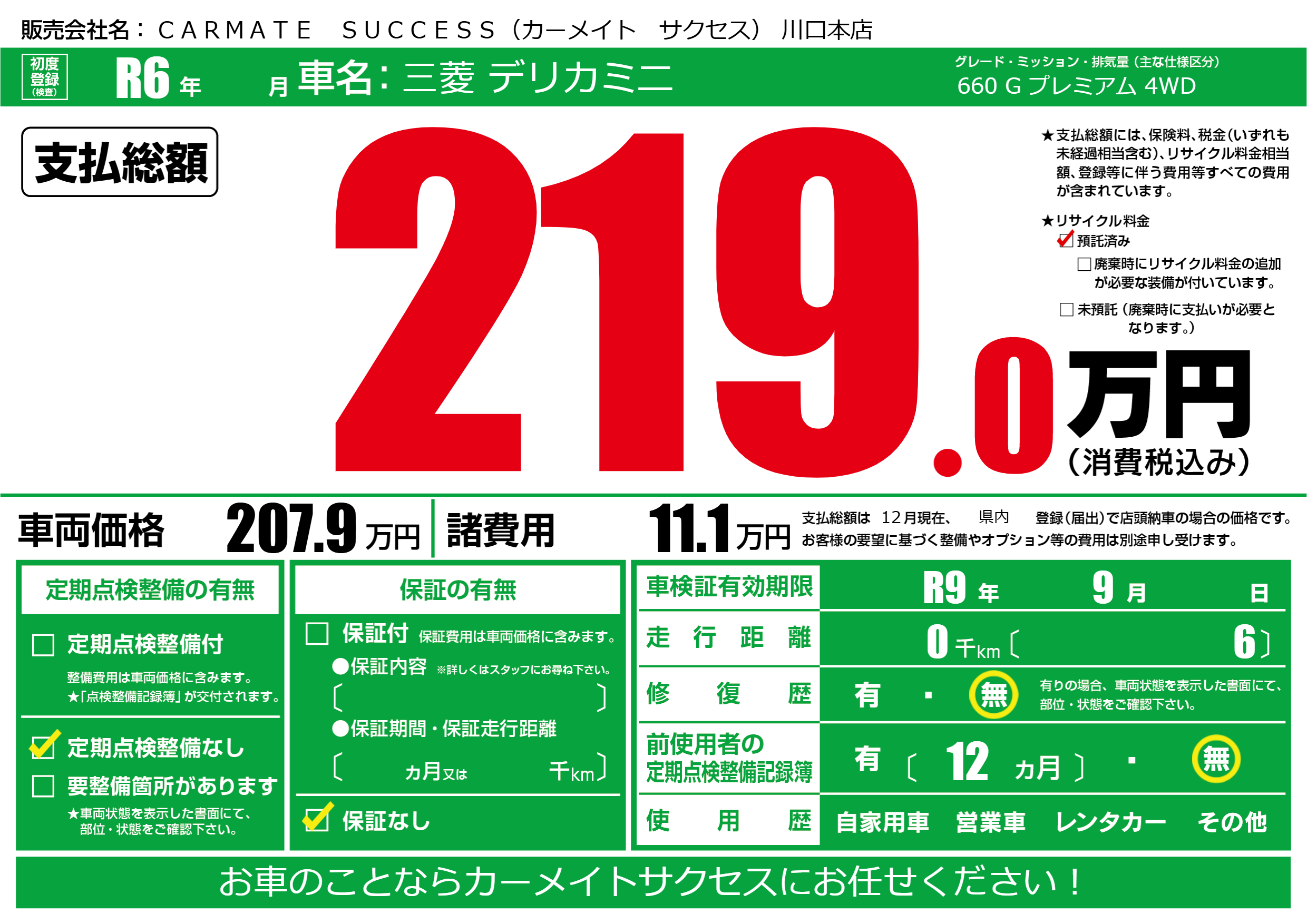 なし | 車検制限 | R9年9月---月 |