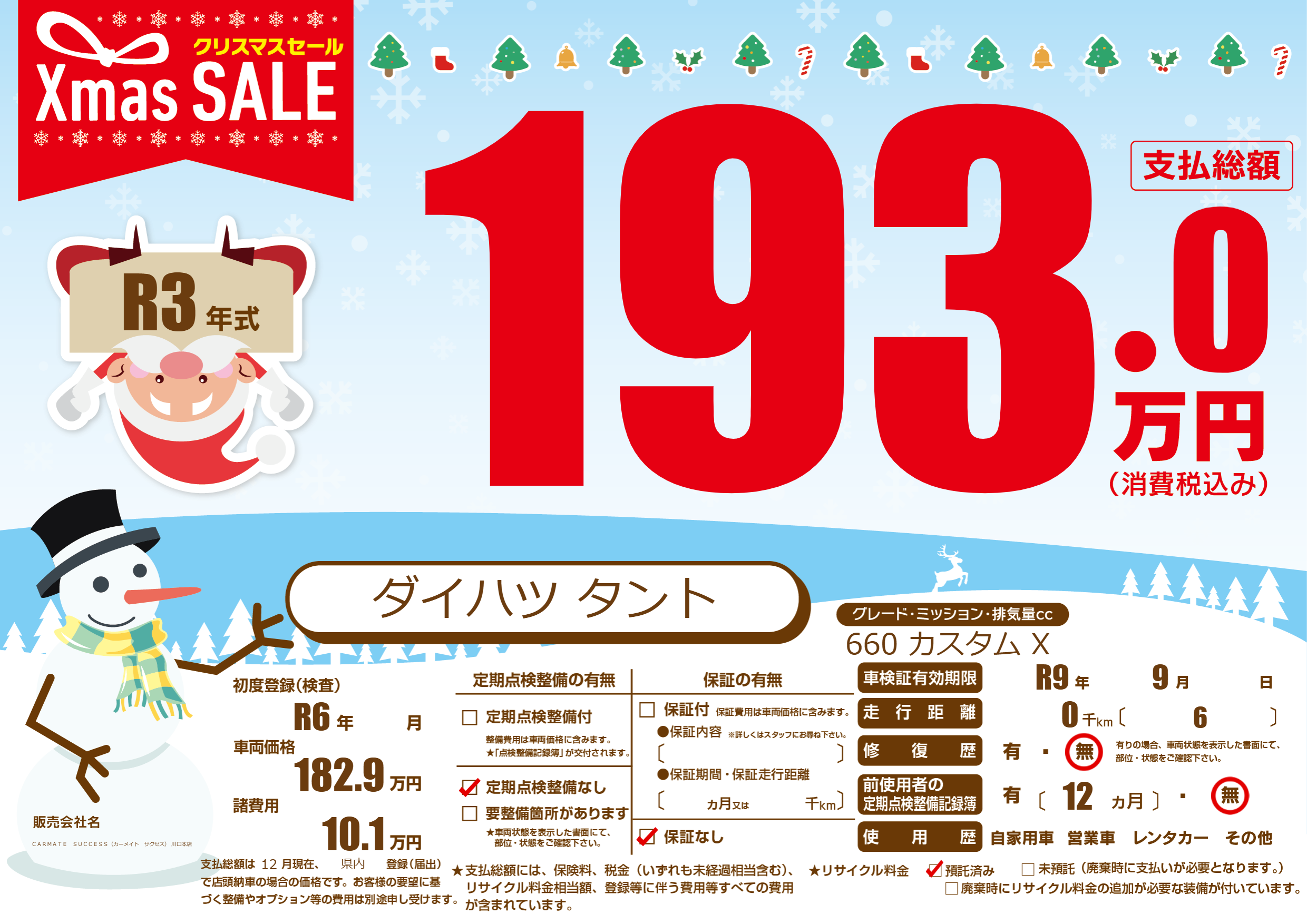 | 車名 | ダイハツ タント | グレード ミッション 排気量 |