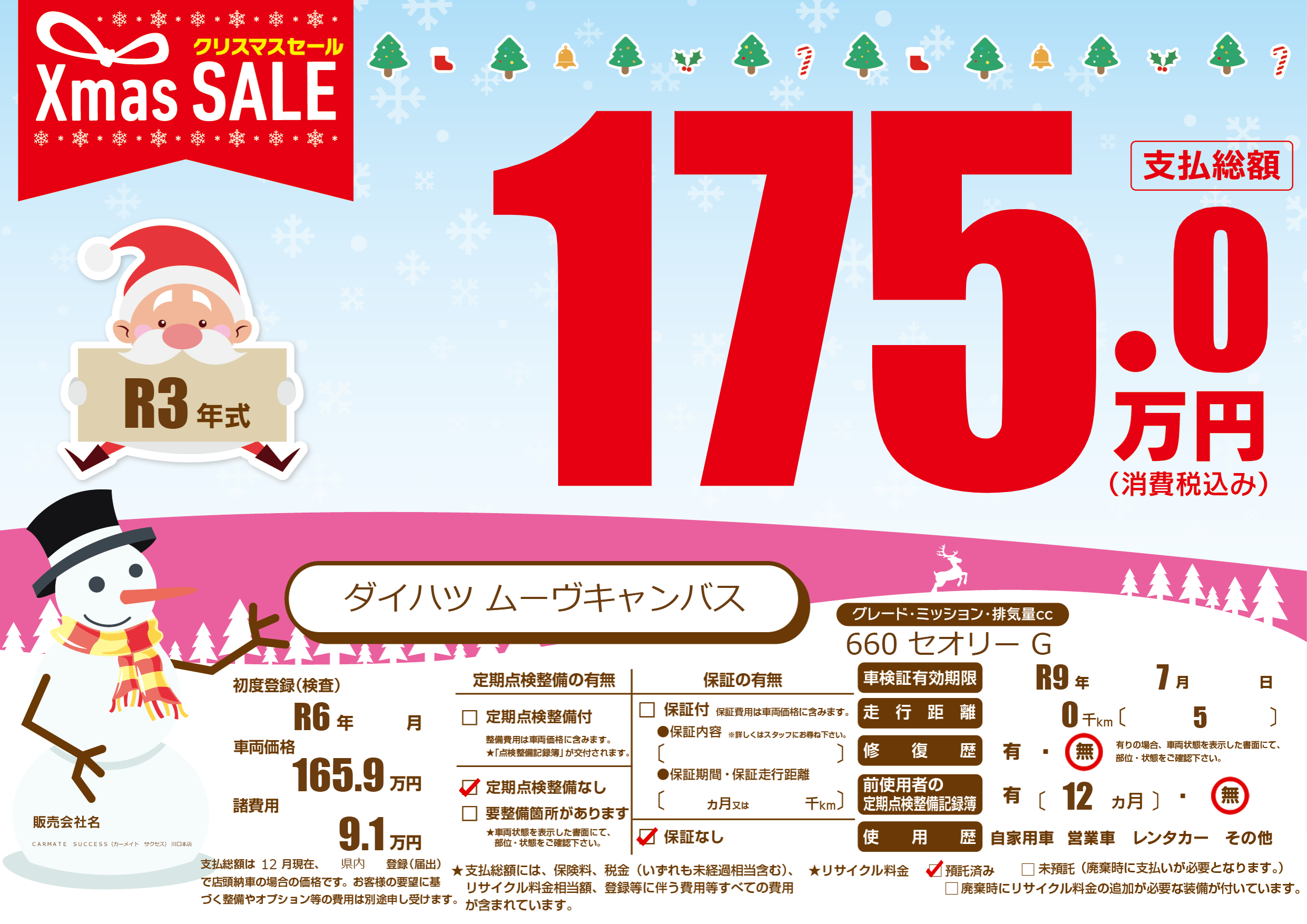| 走行キロ | - | 初年度登録 | R6年---月 |
