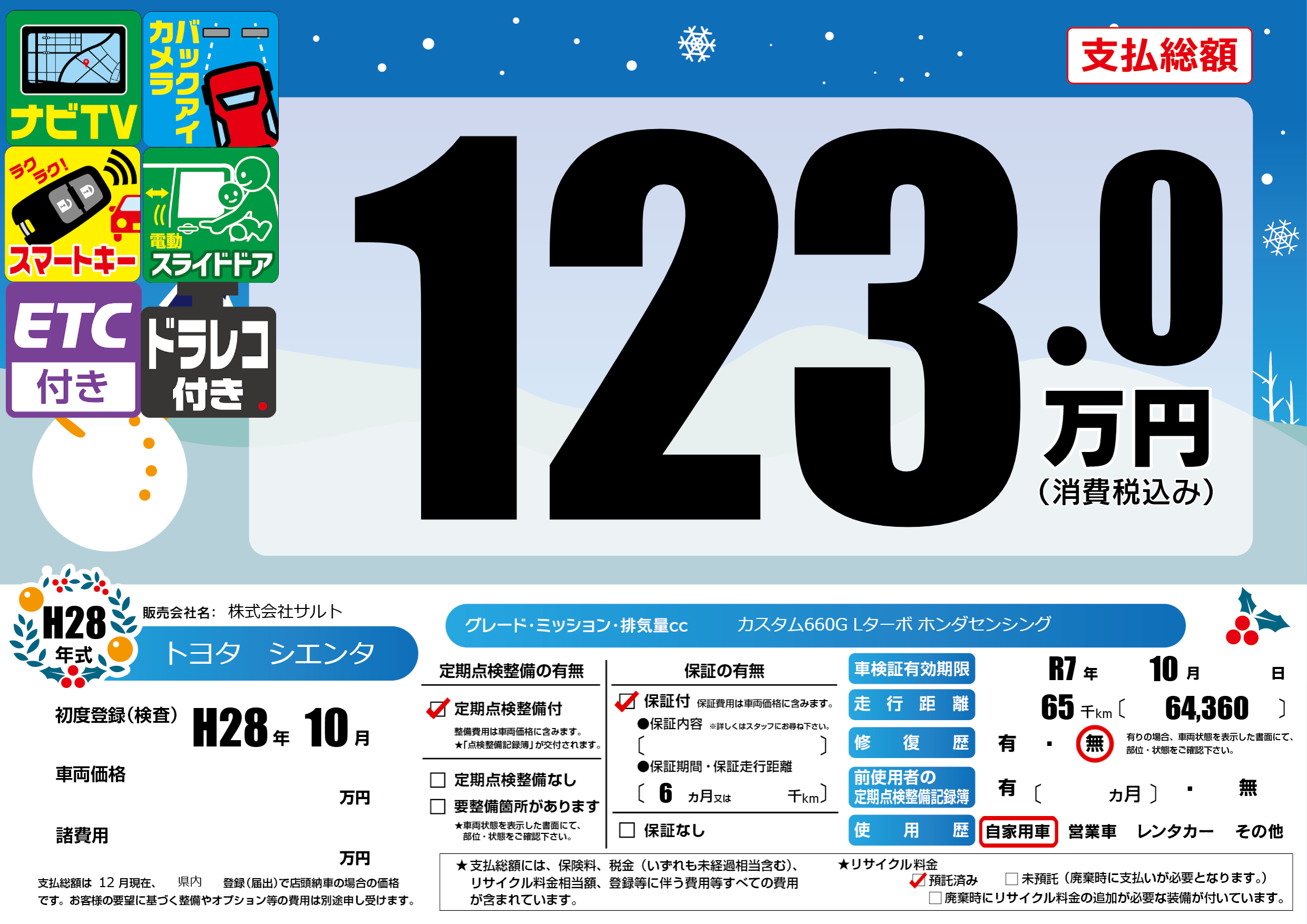 | 車検制限 | R7年 10月 - 日 | ||
