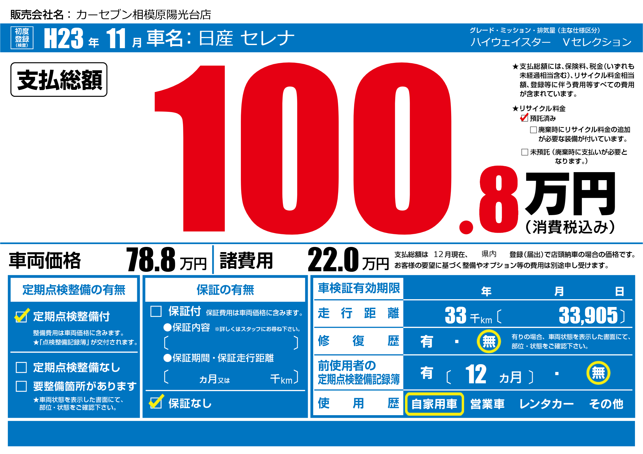 定期点検整備 | 定期点検整備あり |