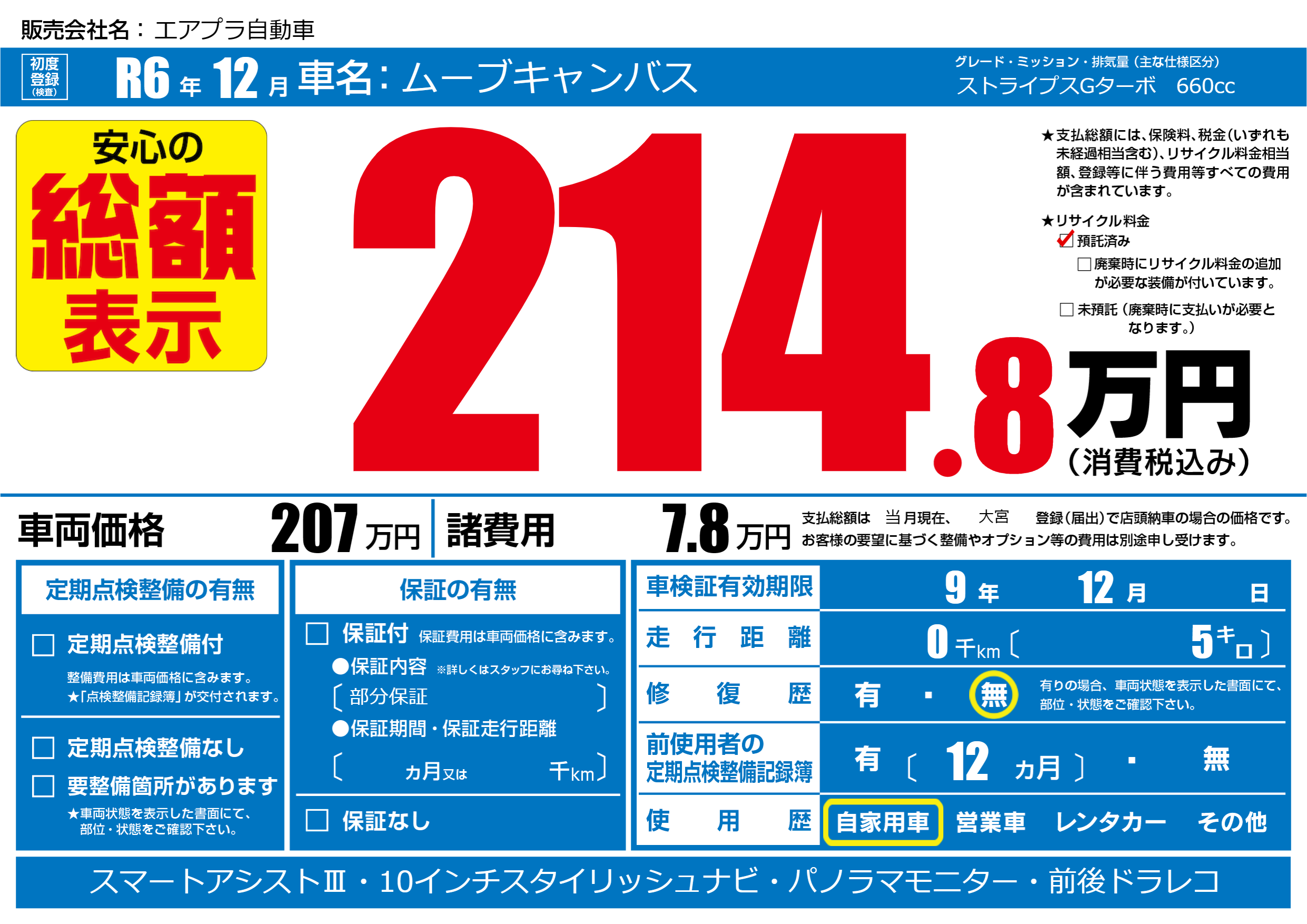 | 走行キロ | - | 初年度登録 | R6年12月 |