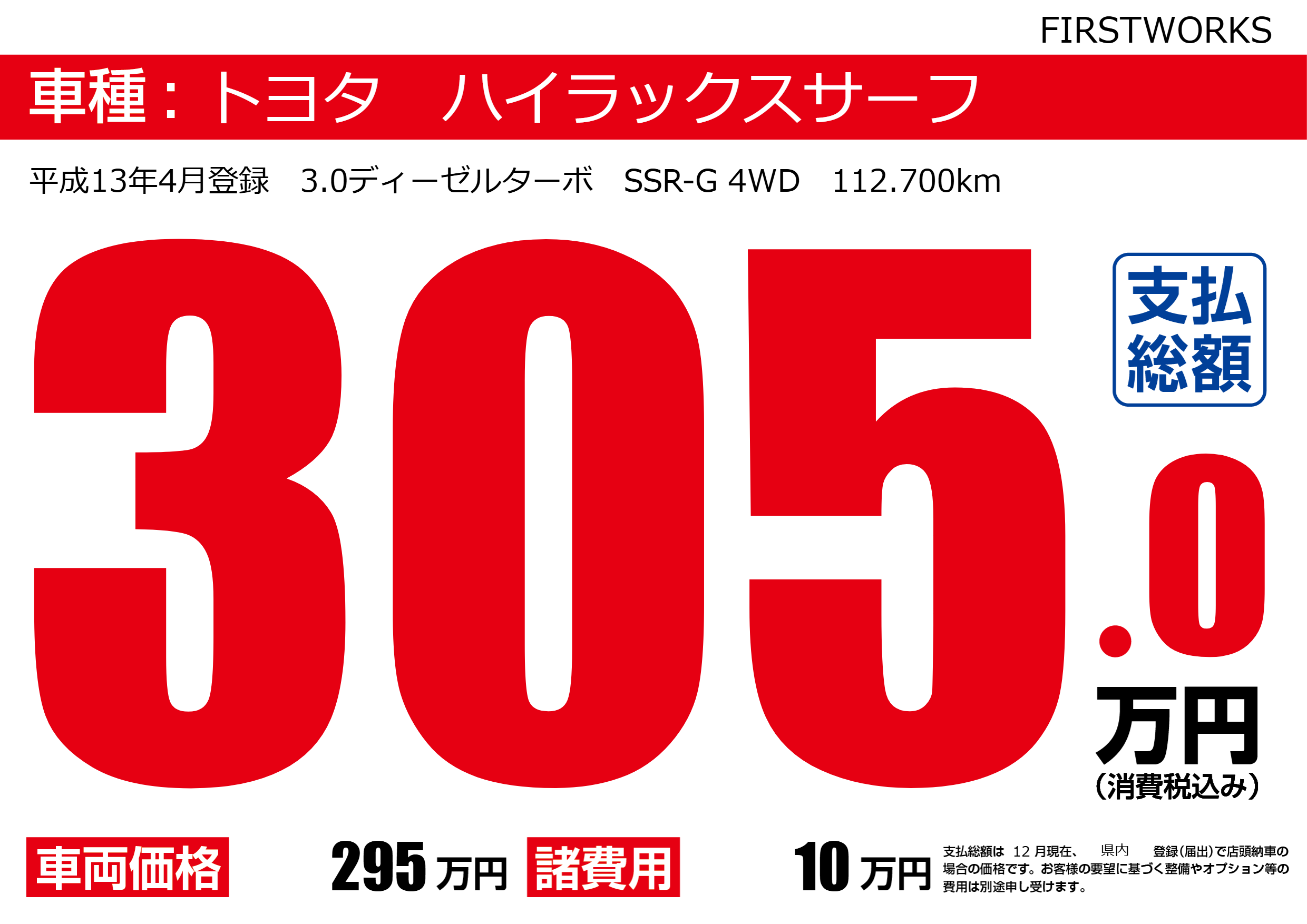 | 車名 | トヨタ ハイラックスサーフ | グレード ミッション 排気量 |