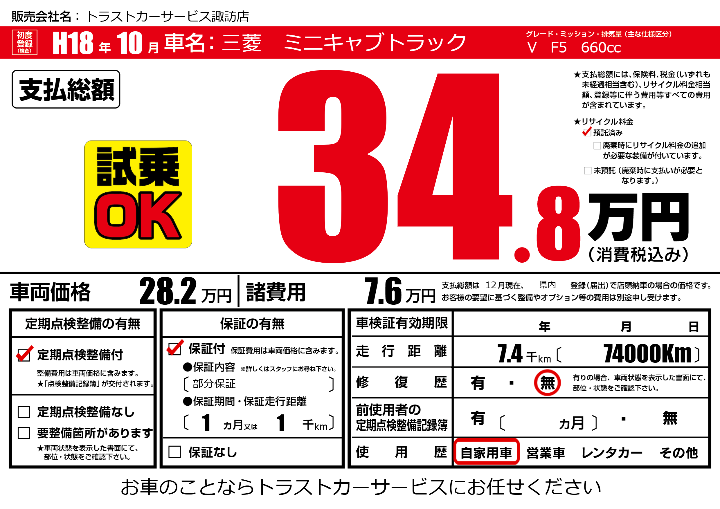 | 車名 | 三菱 ミニキャブトラック | グレード ミッション 排気量 |