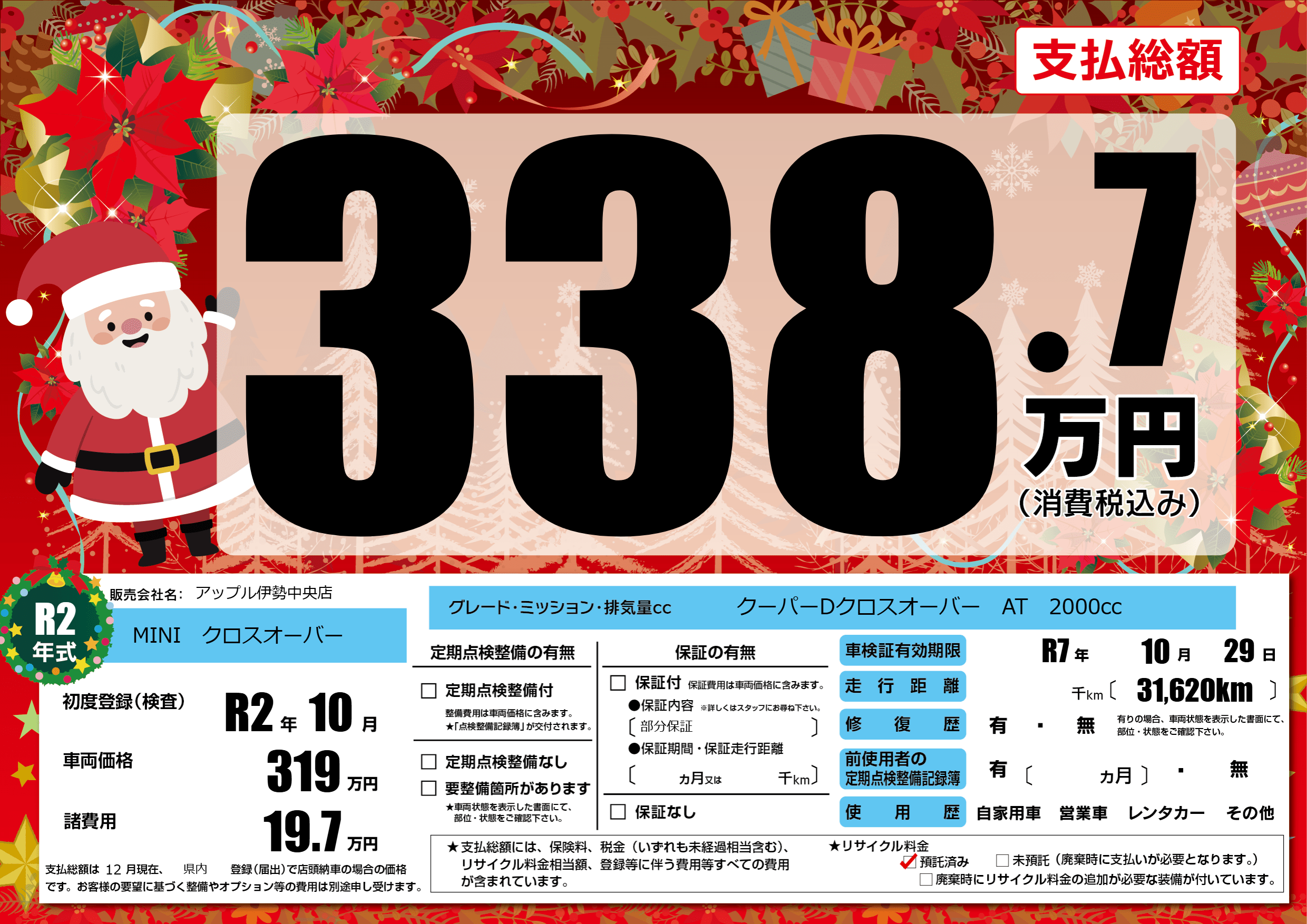 | 車名 | MINI クロスオーバー | グレード ミッション 排気量 |