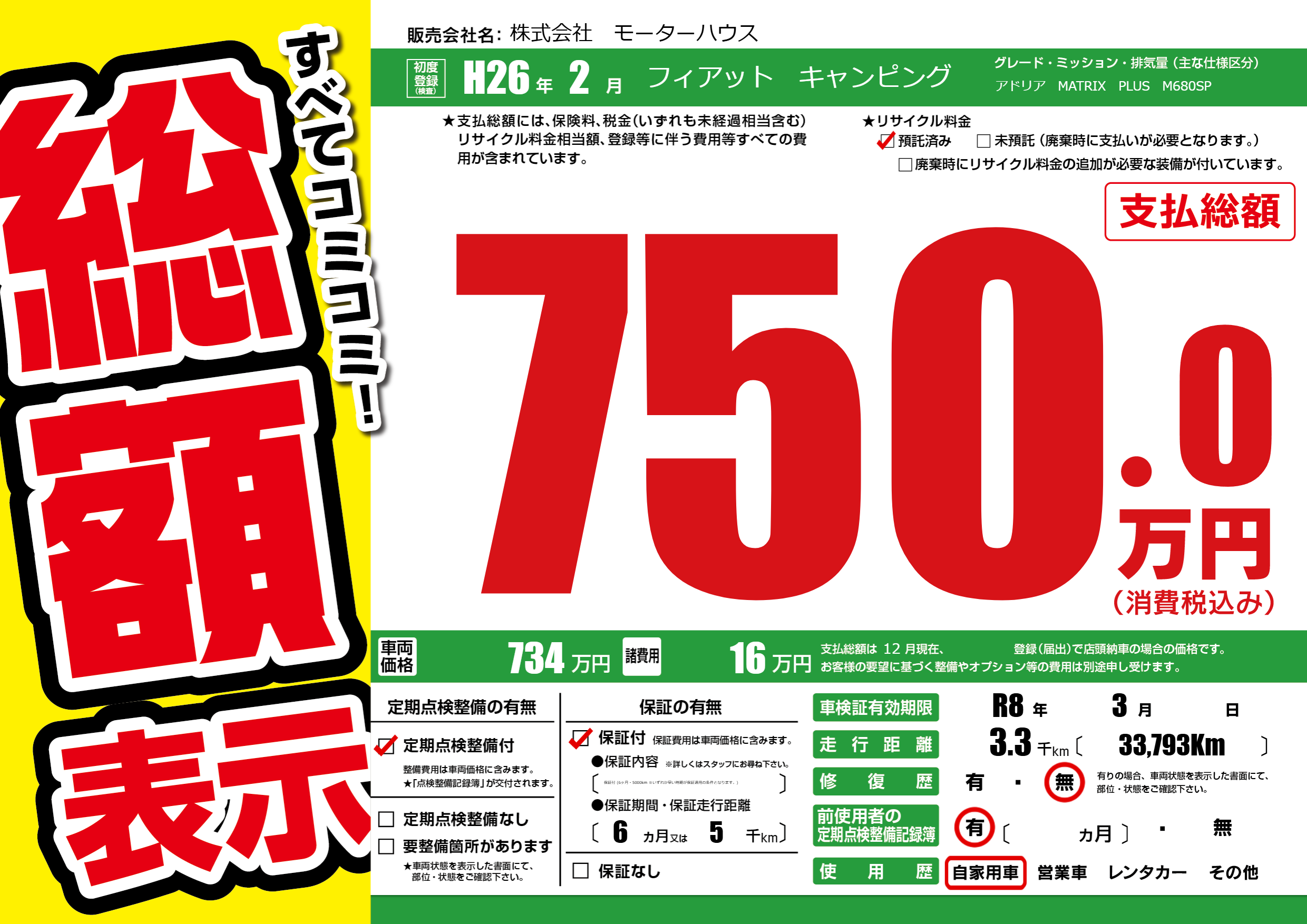 なし | 車検制限 | R8年3月---月 |