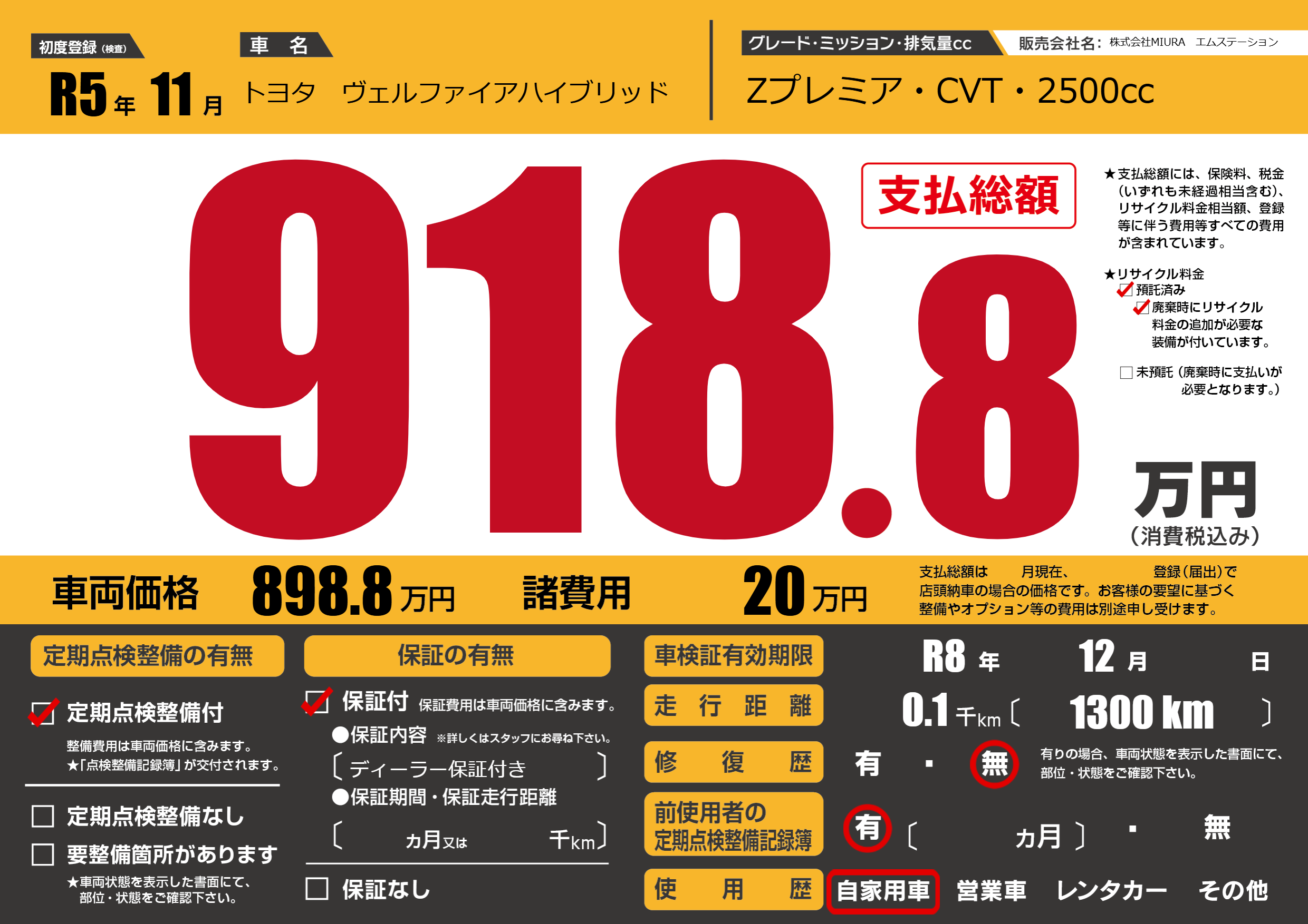 | 走行キロ | - | 初年度登録 | R5年11月 |