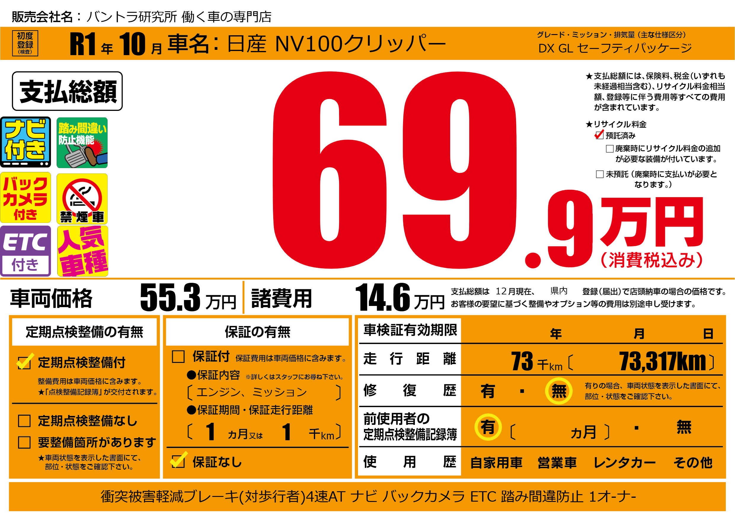 | 定期点検整備 | 定期点検整備あり | ||