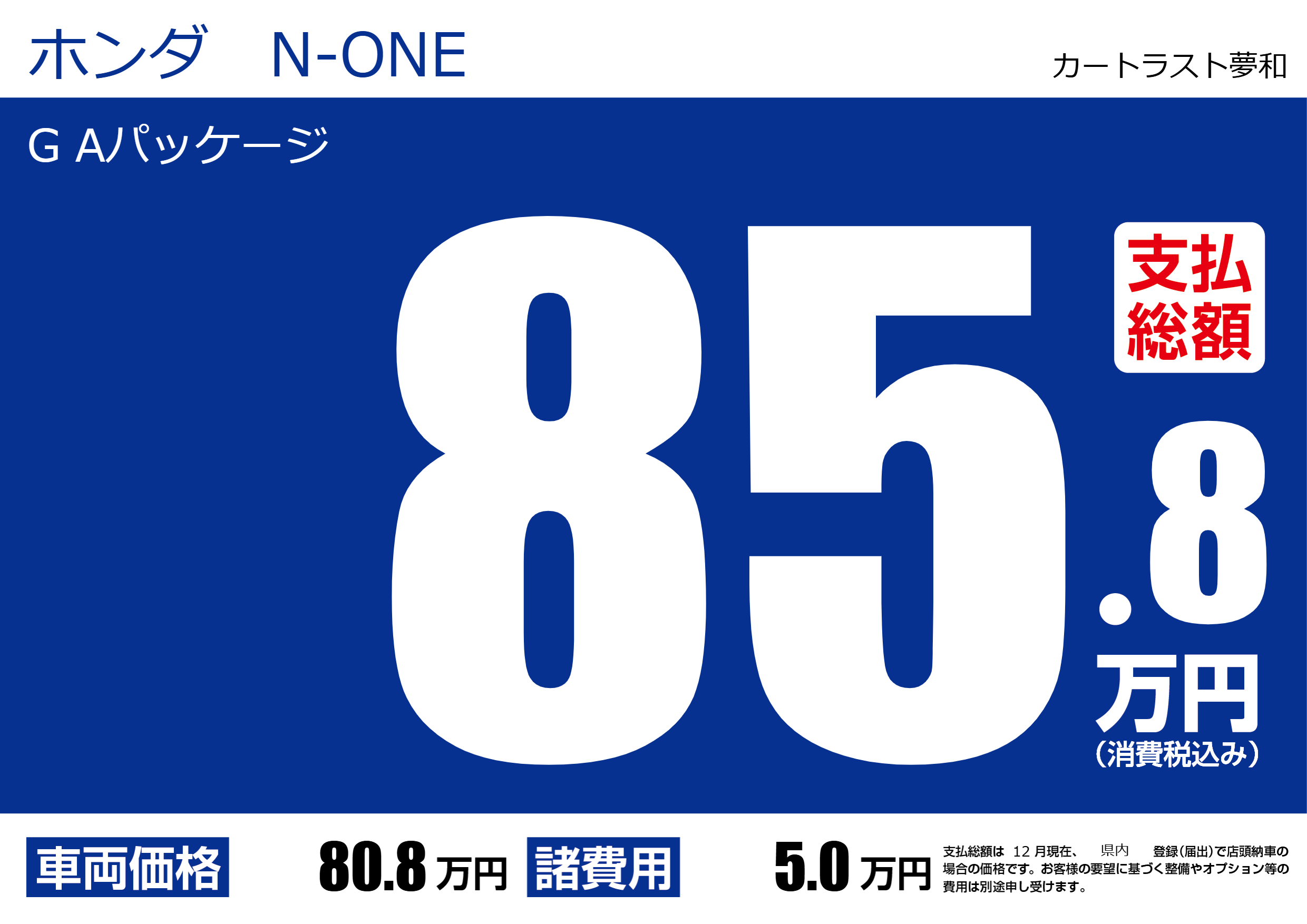 | 車名 | ホンダ N-ONE | グレード ミッション 排気量 |