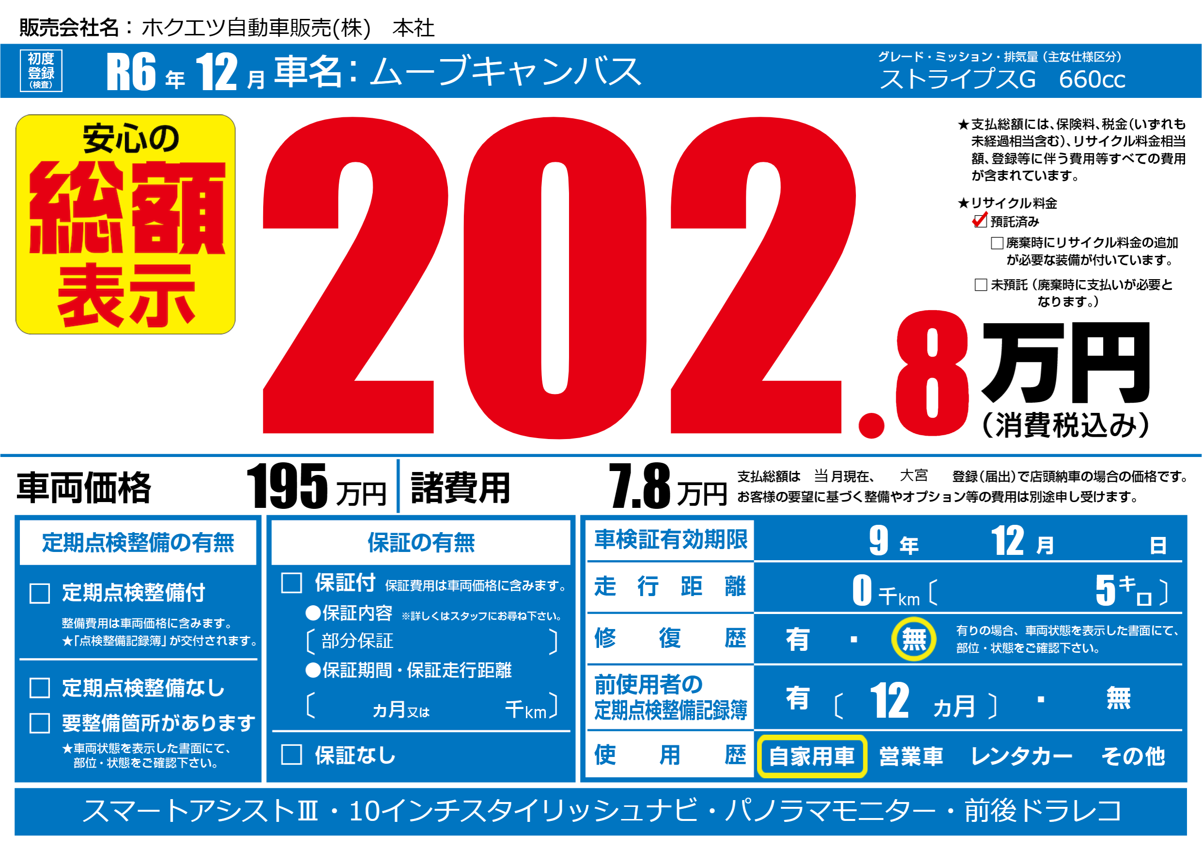 | 走行キロ | - | 初年度登録 | R6年12月 |