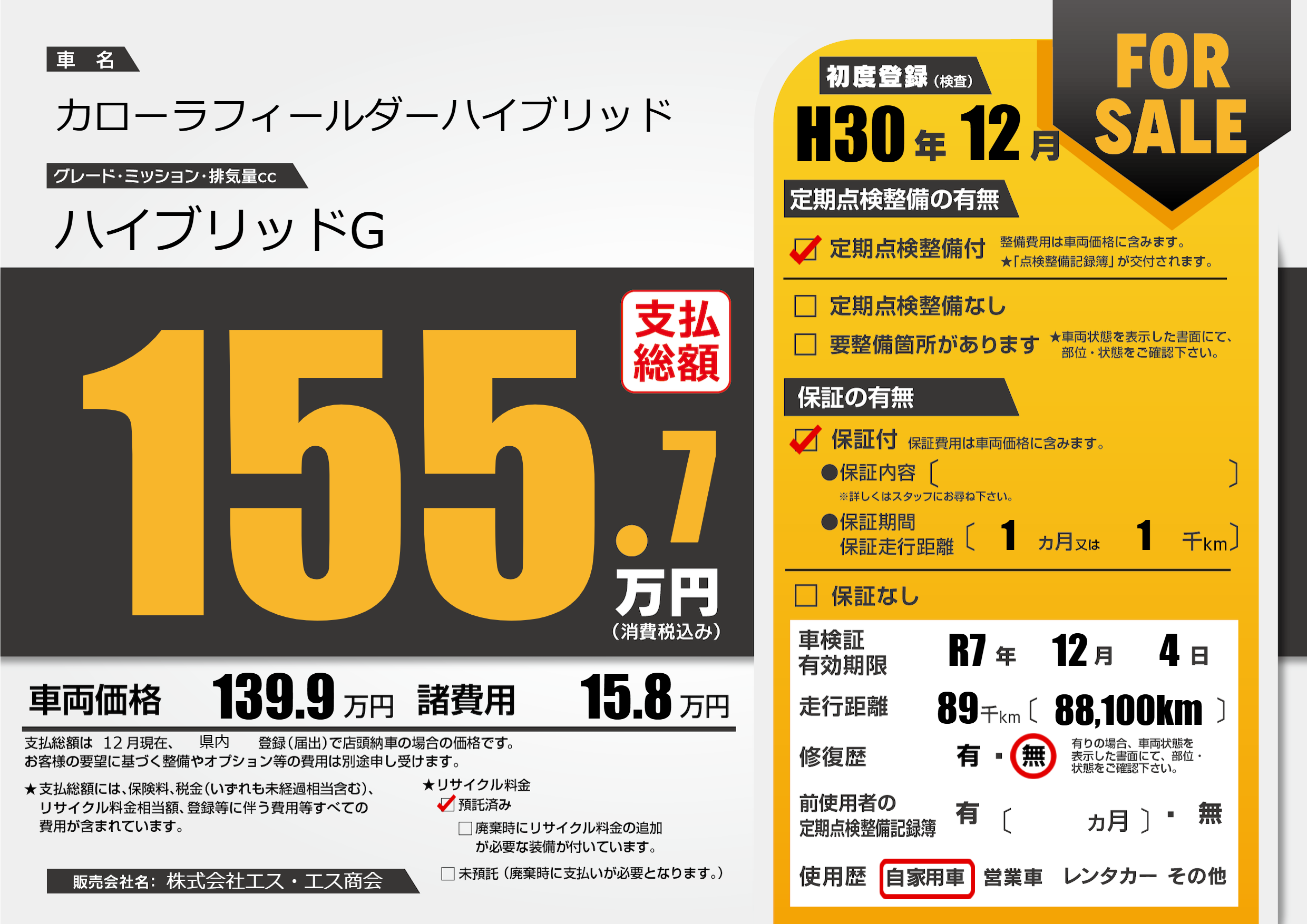 | 車検制限 | R7年 12月 4日 | ||