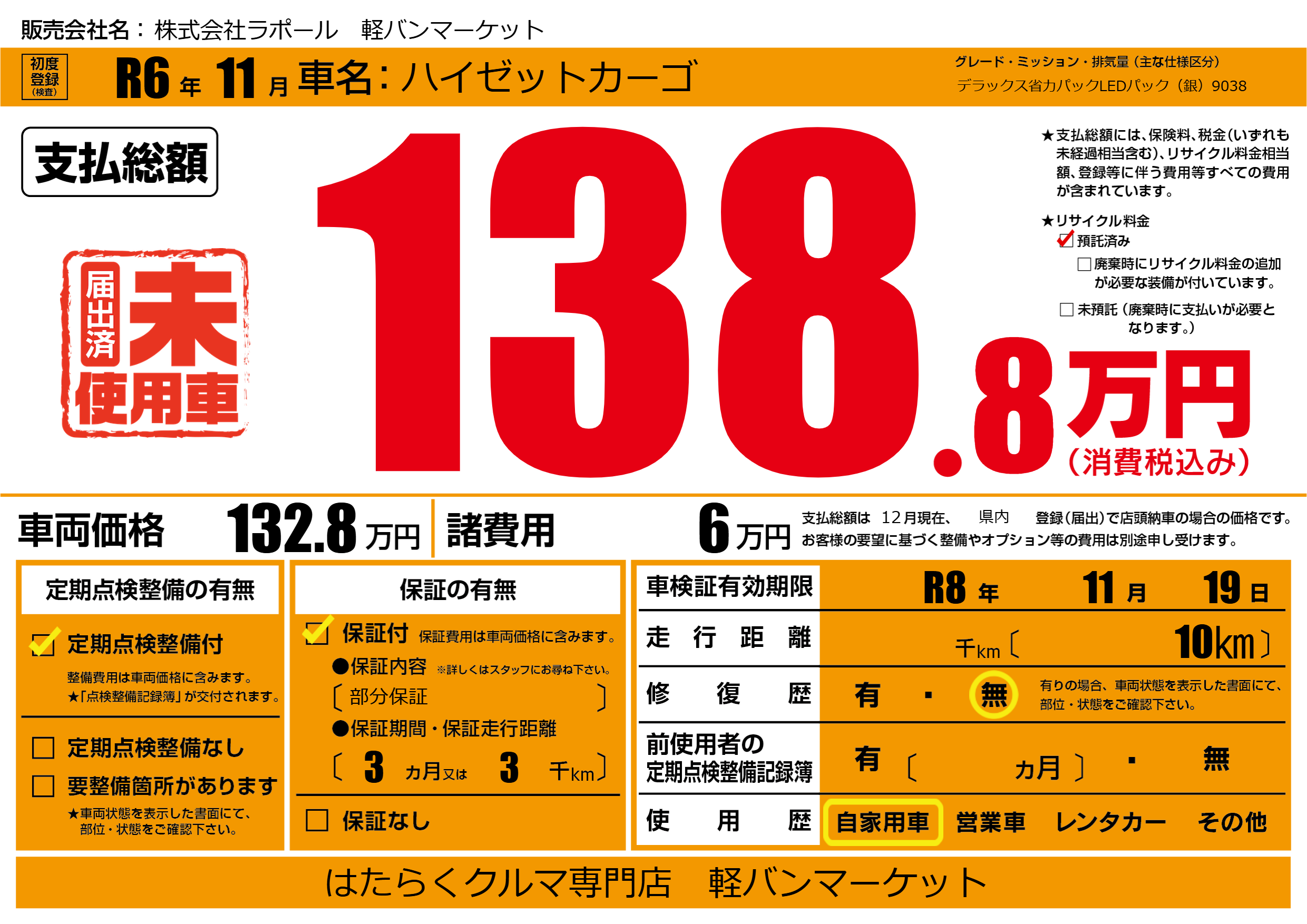 なし | 車検制限 | R8年11月19月 |