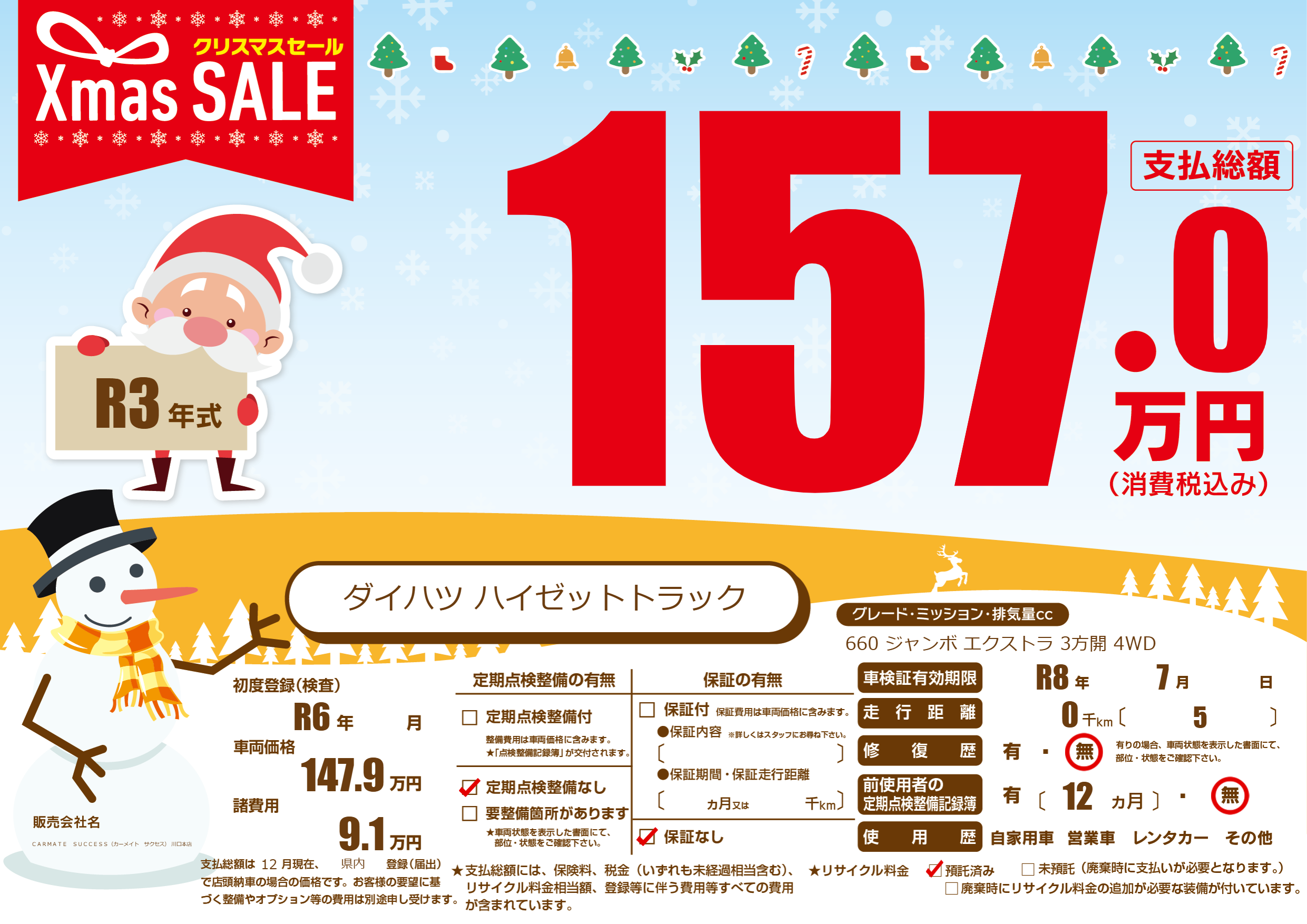 | 走行キロ | - | 初年度登録 | R6年---月 |