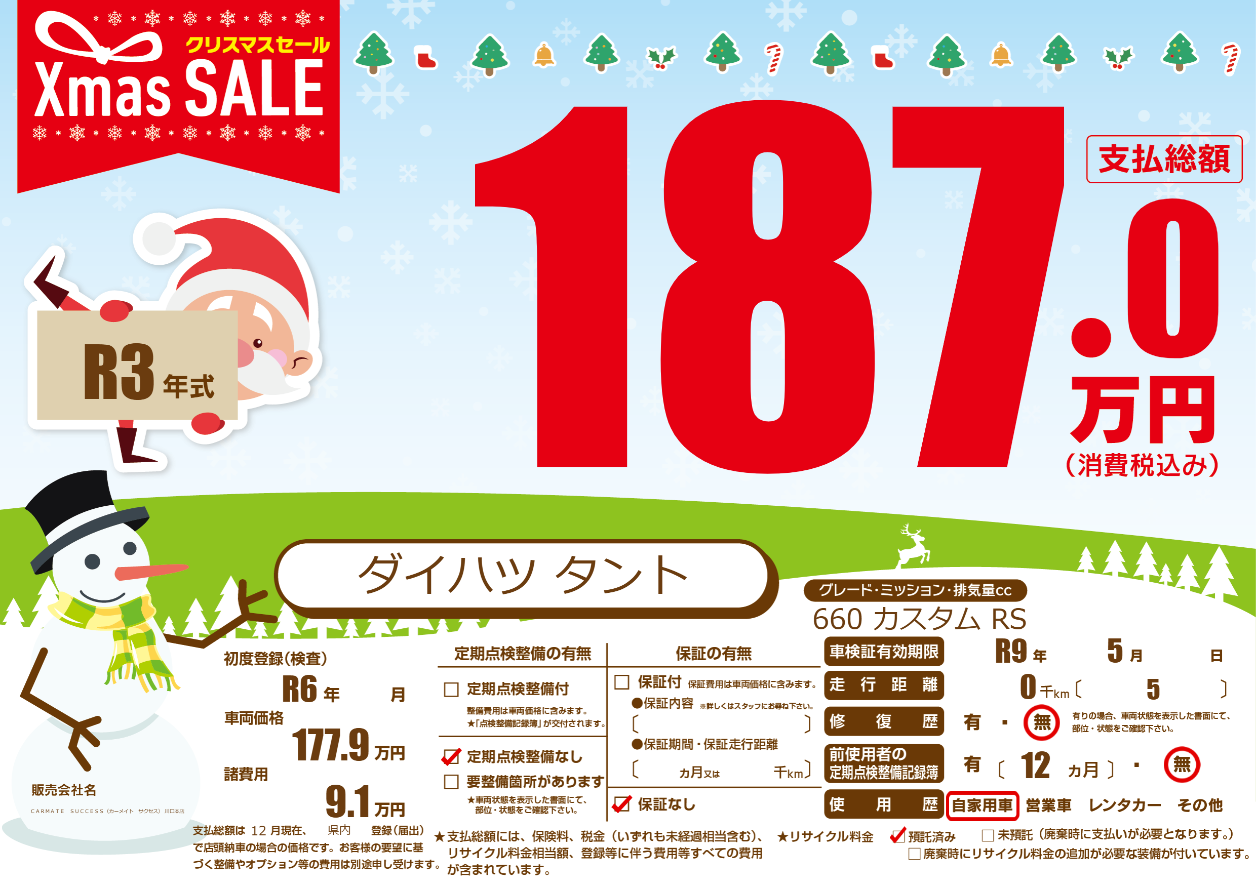 | 車名 | ダイハツ タント | グレード ミッション 排気量 |