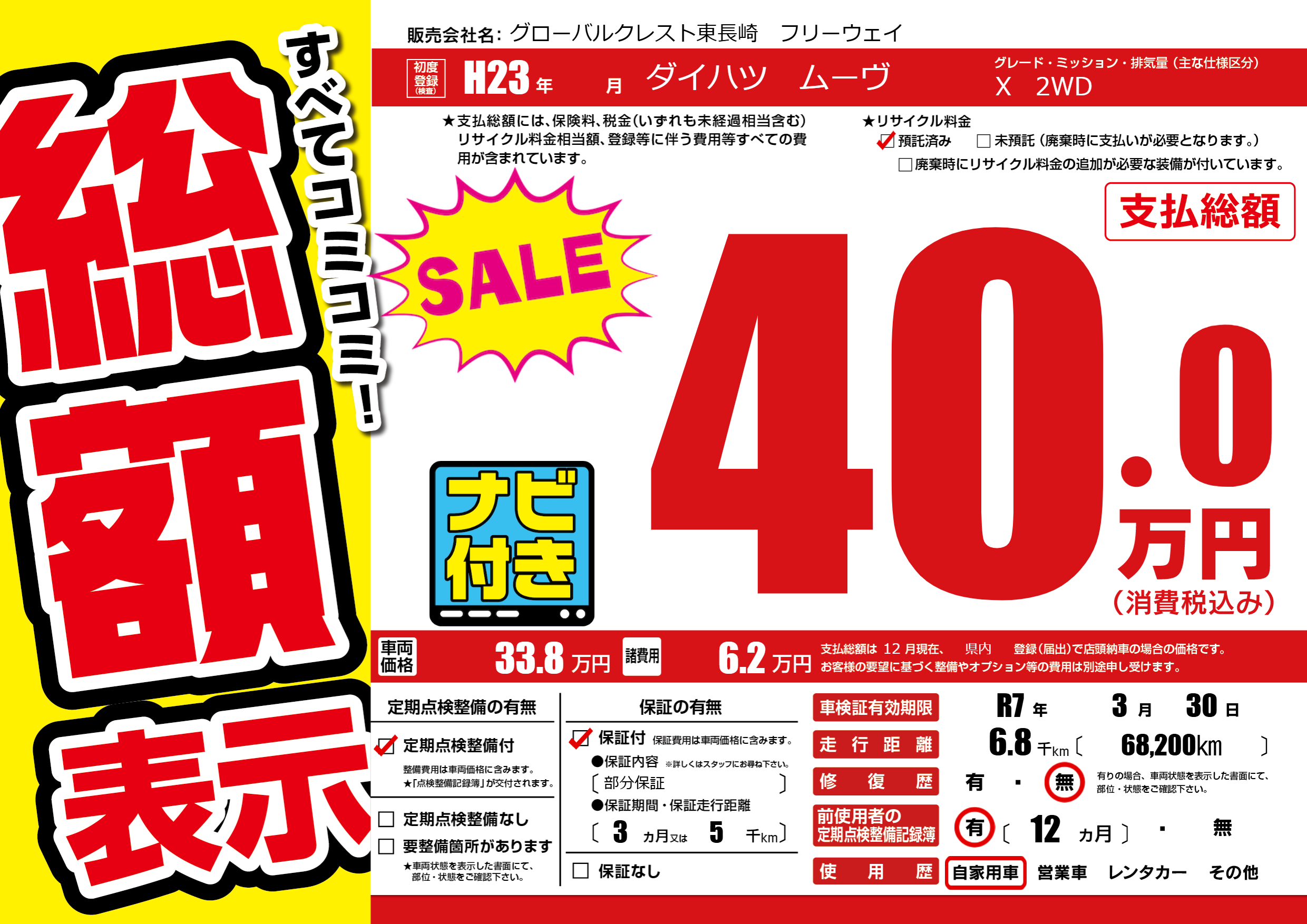 | 車検制限 | R7年 3月 30日 | ||