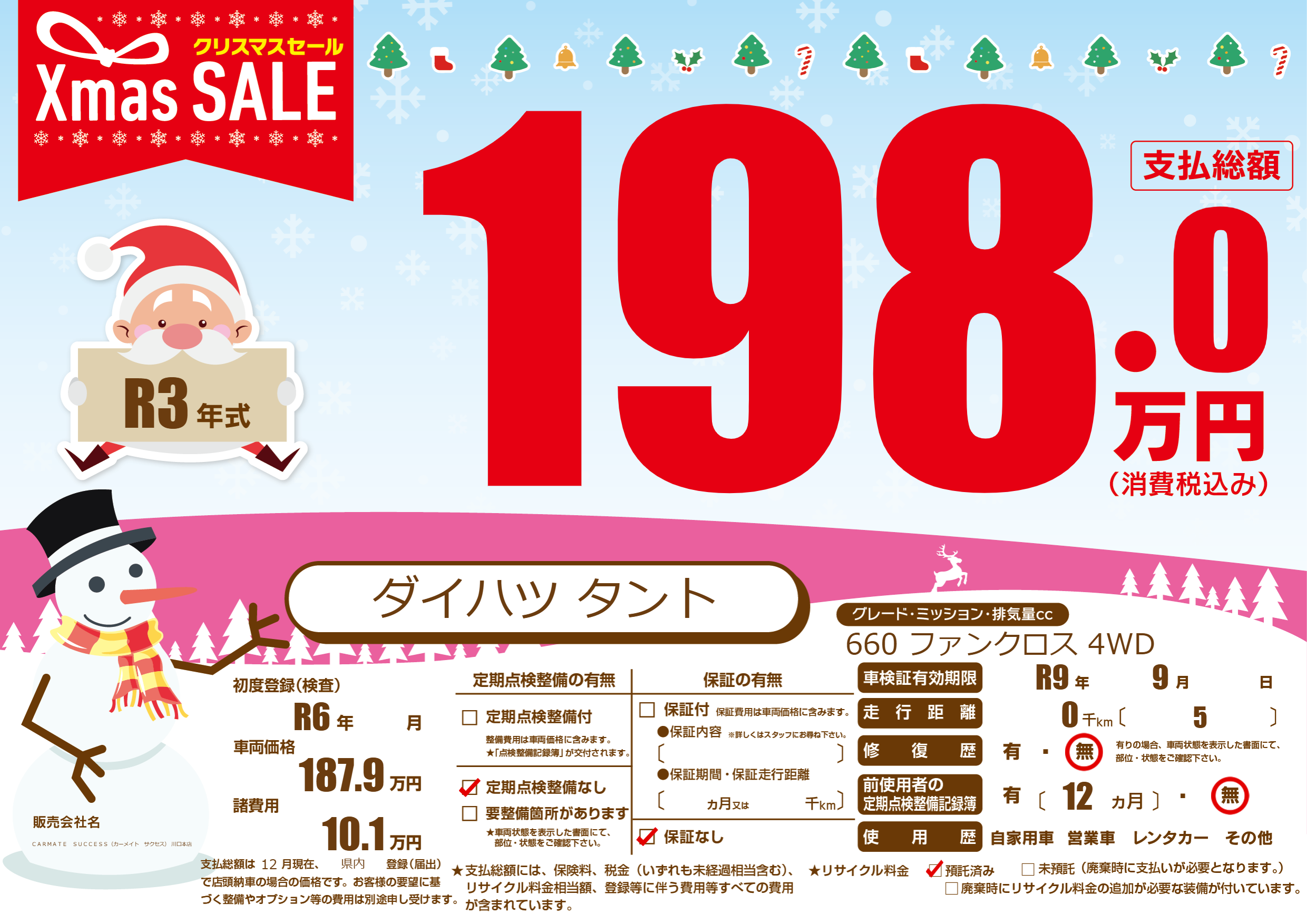 なし | 車検制限 | R9年9月---月 |