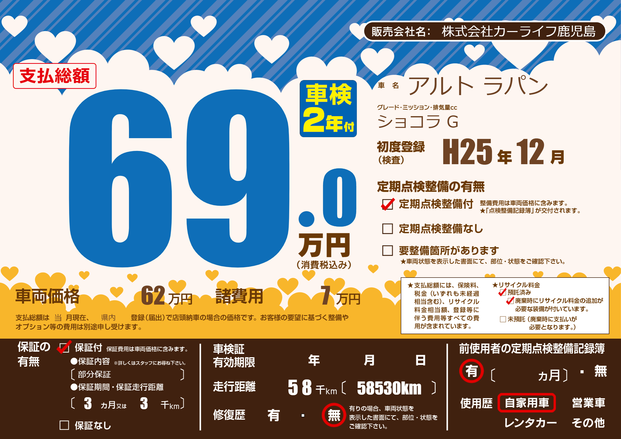 | 車名 | アルト ラパン | グレード ミッション 排気量 |