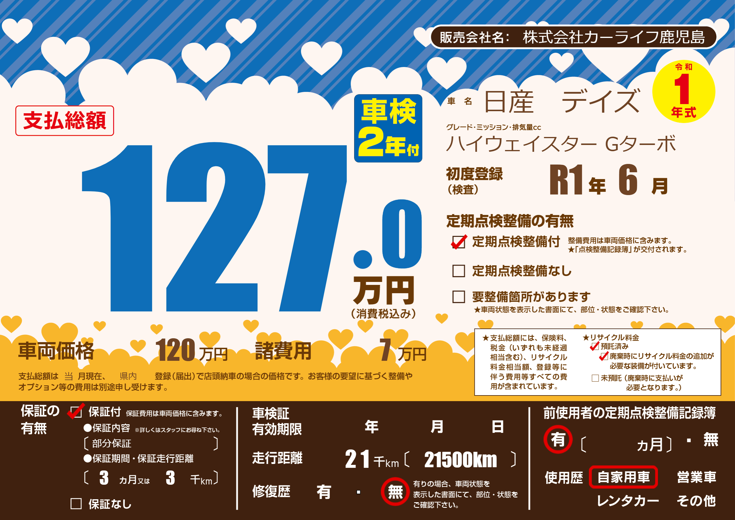 | 定期点検整備 | 定期点検整備あり | ||