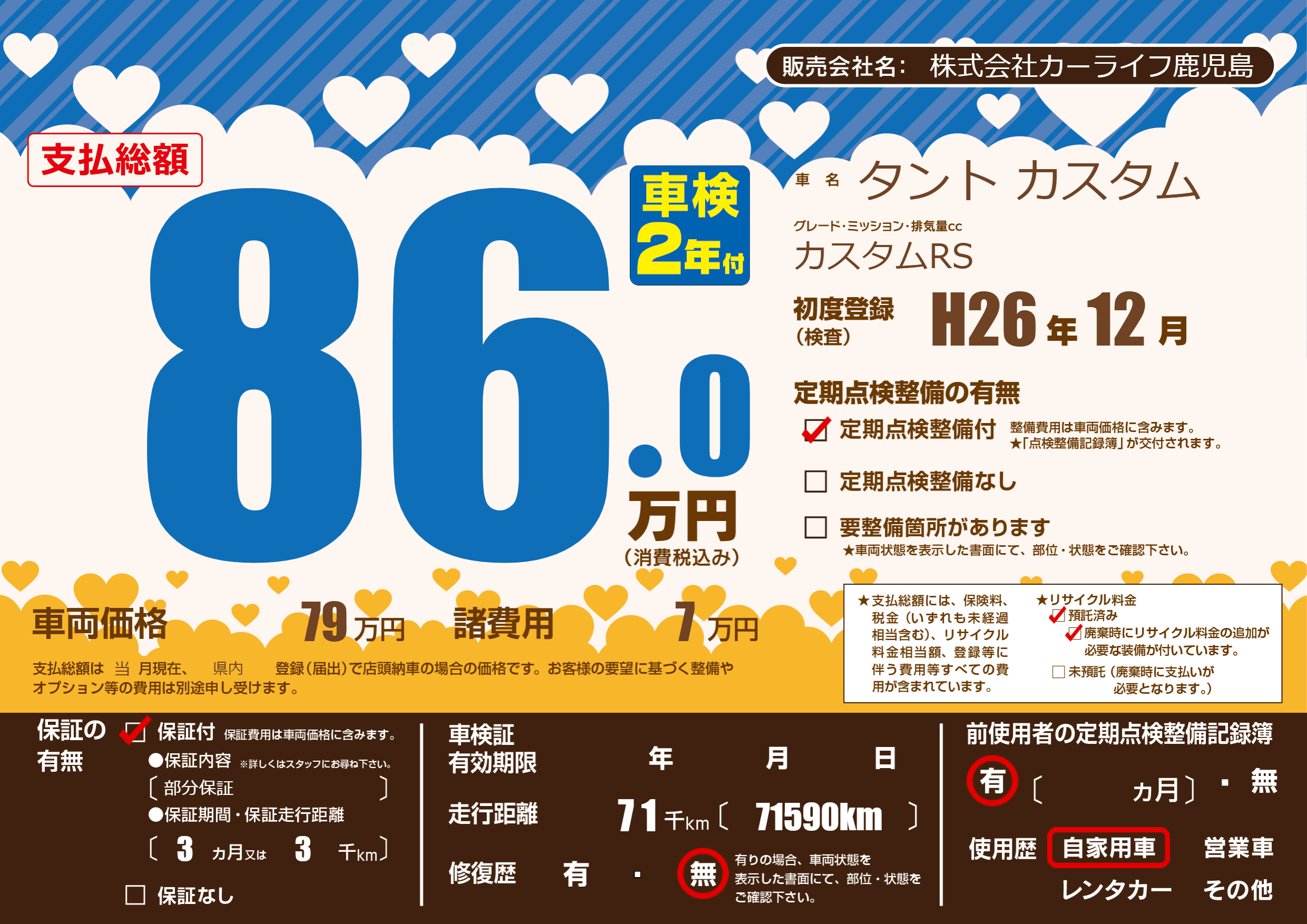 | 定期点検整備 | 定期点検整備あり | ||