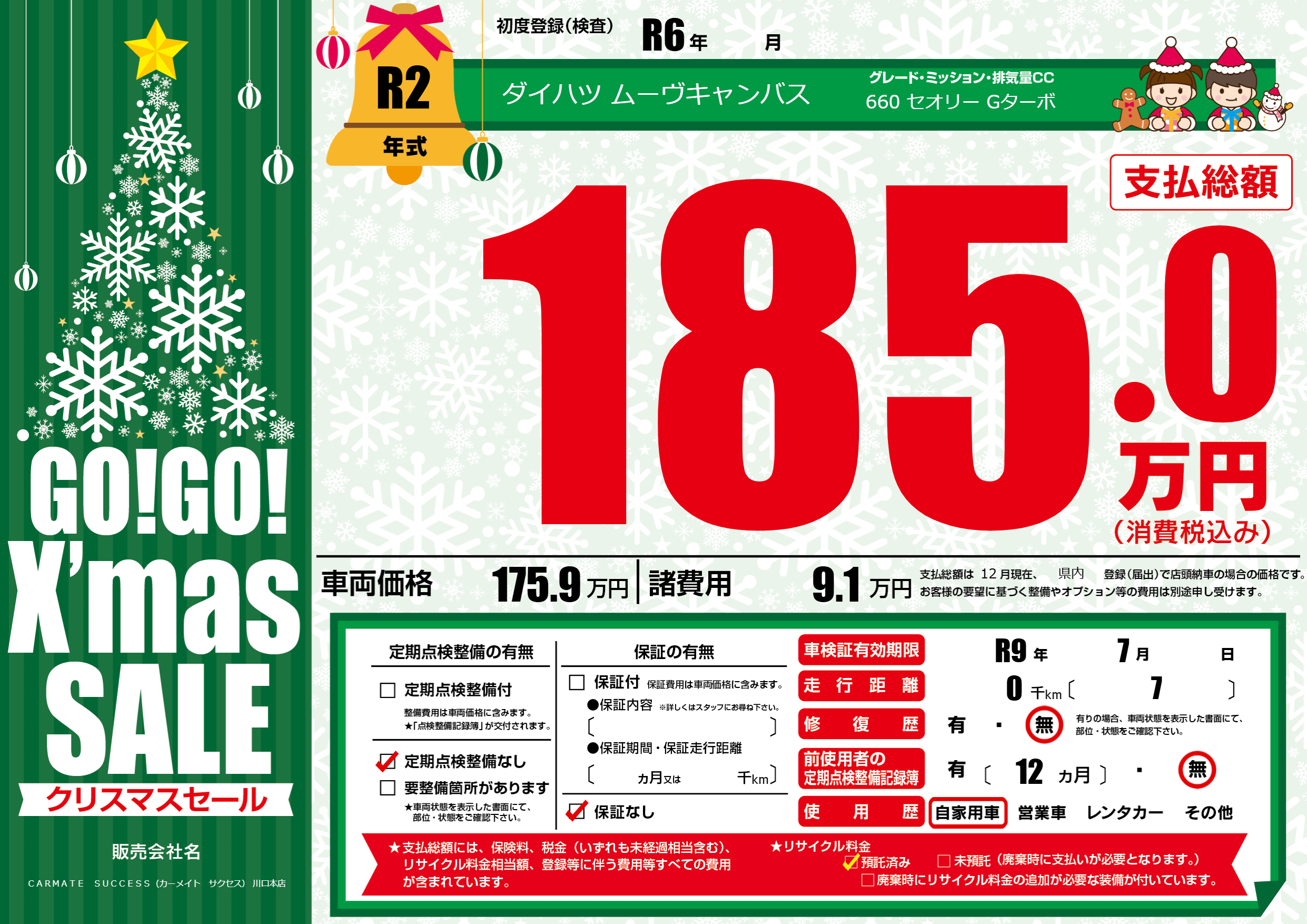| 車名 | ダイハツ ムーヴキャンバス | グレード ミッション 排気量 |