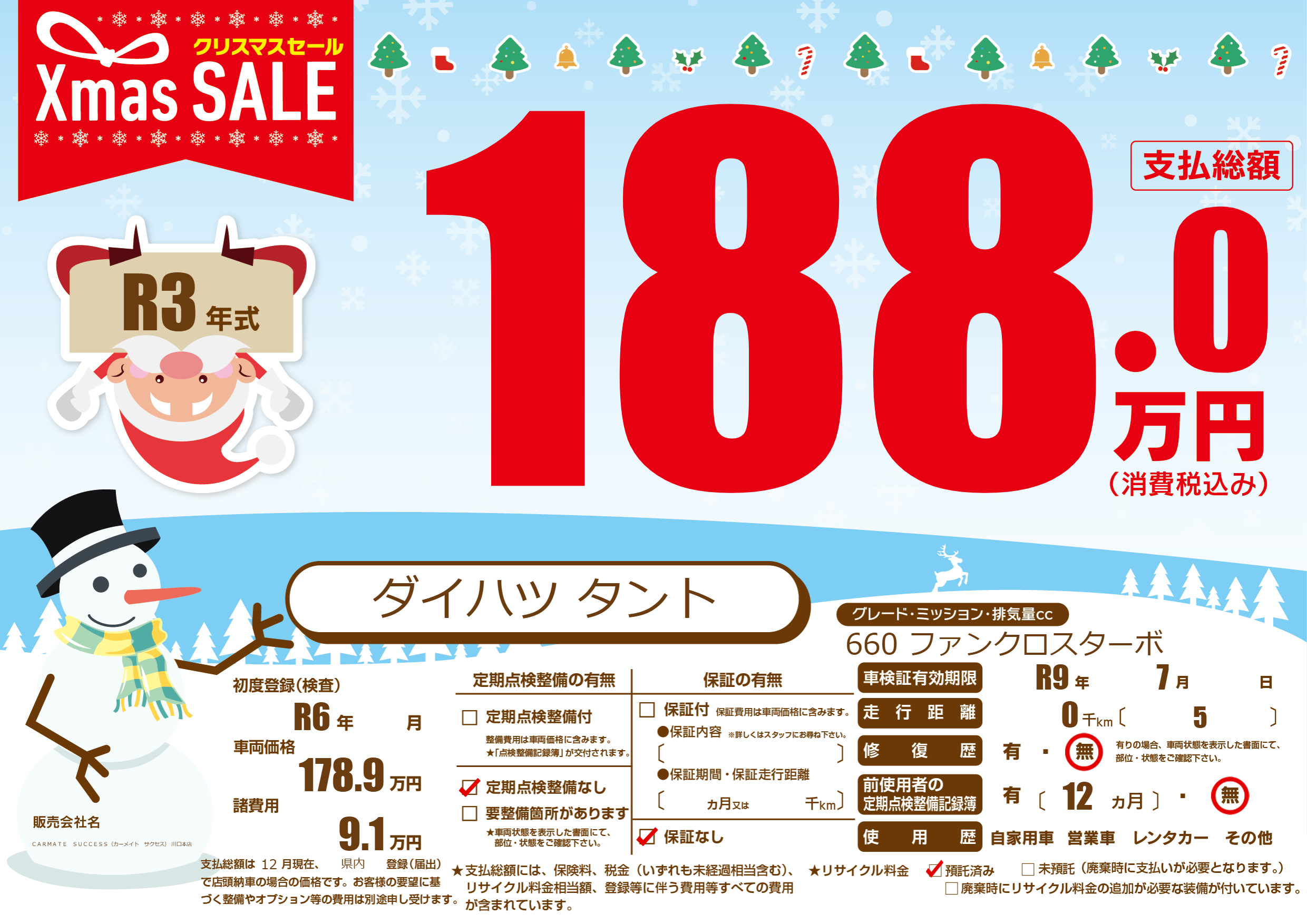| 車名 | ダイハツ タント | グレード ミッション 排気量 |