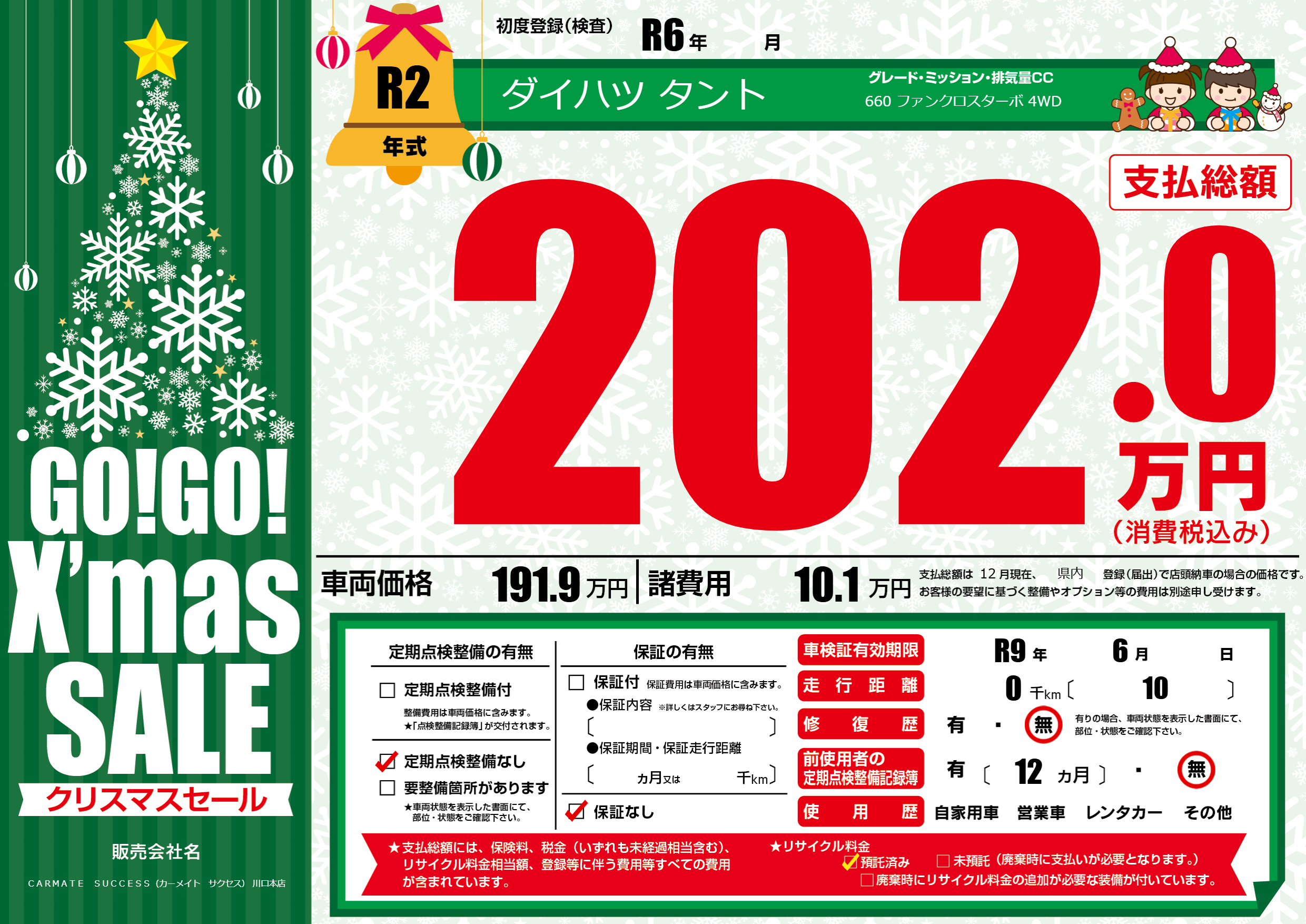 なし | 車検制限 | R9年6月---月 |