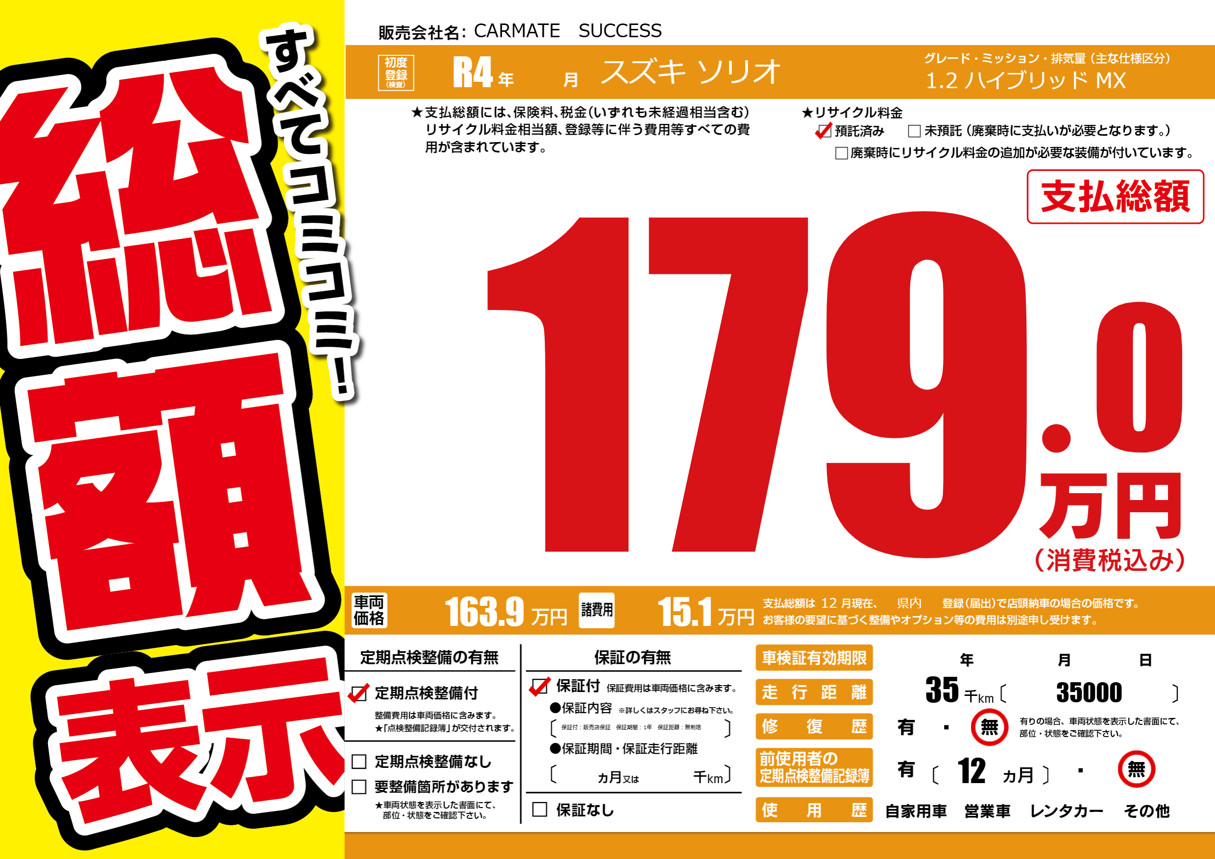 | 定期点検整備 | 定期点検整備あり | ||
