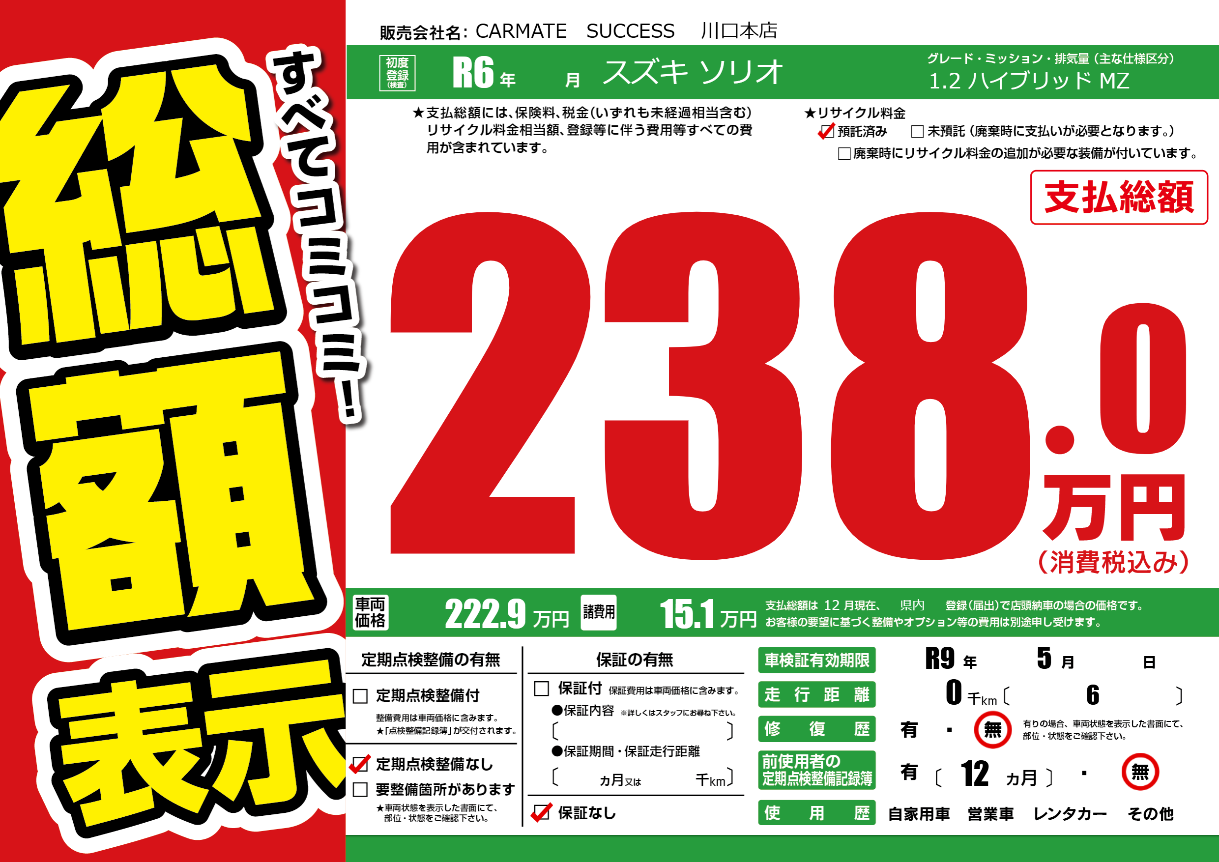 | 車名 | スズキ ソリオ | グレード ミッション 排気量 |