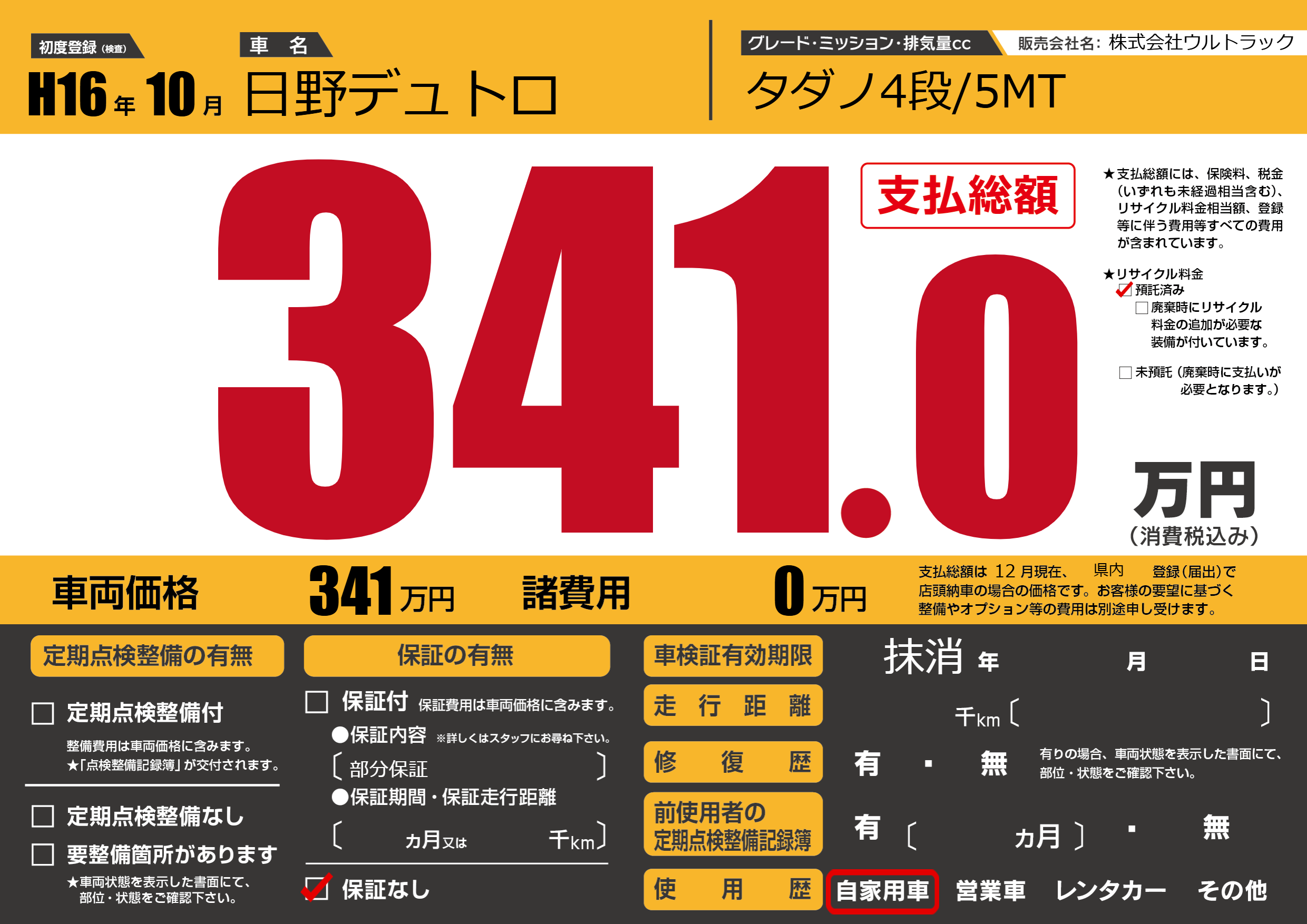| 走行キロ | - | 初年度登録 | H16年10月 |