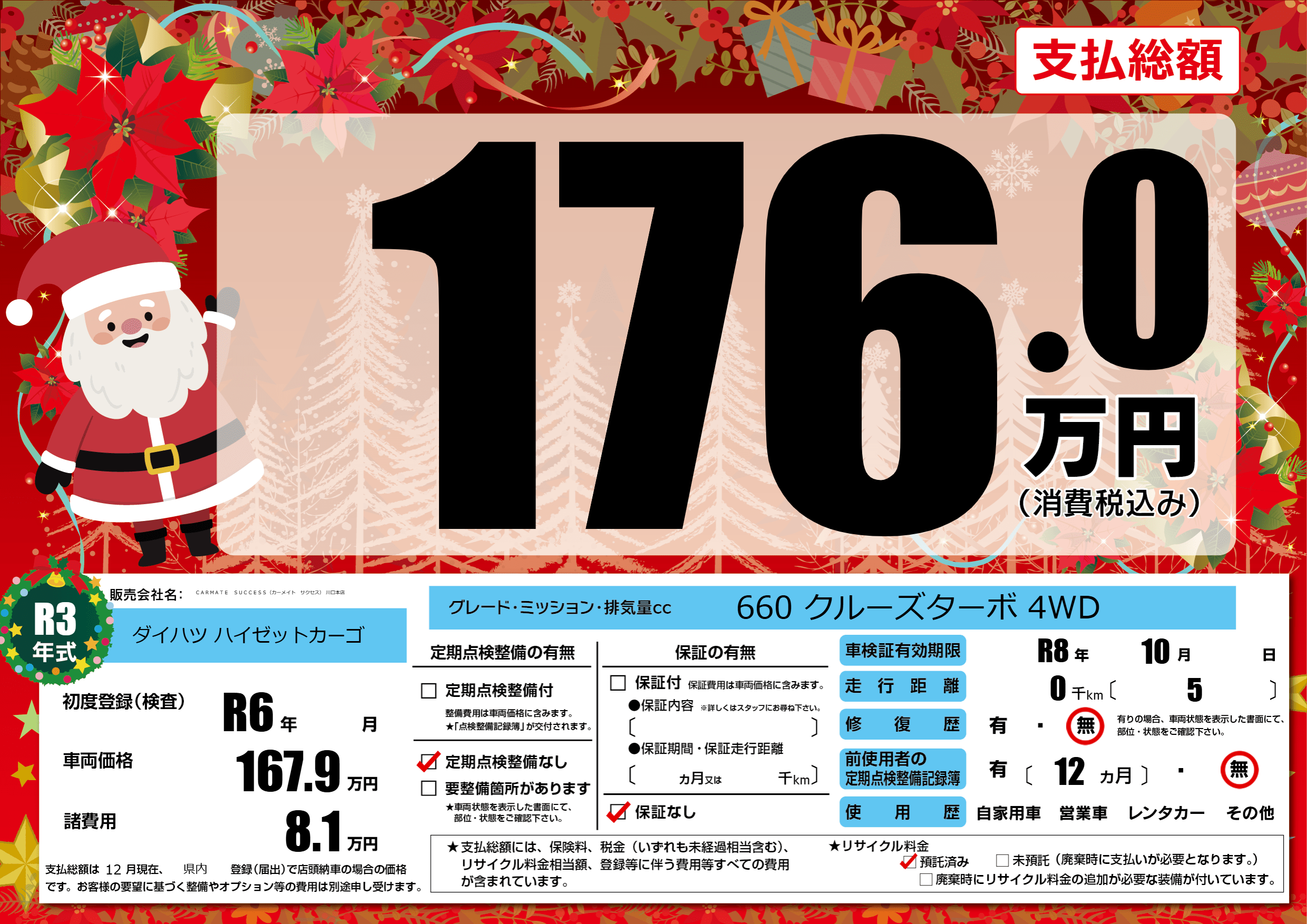 | 車名 | ダイハツ ハイゼットカーゴ | グレード ミッション 排気量 |