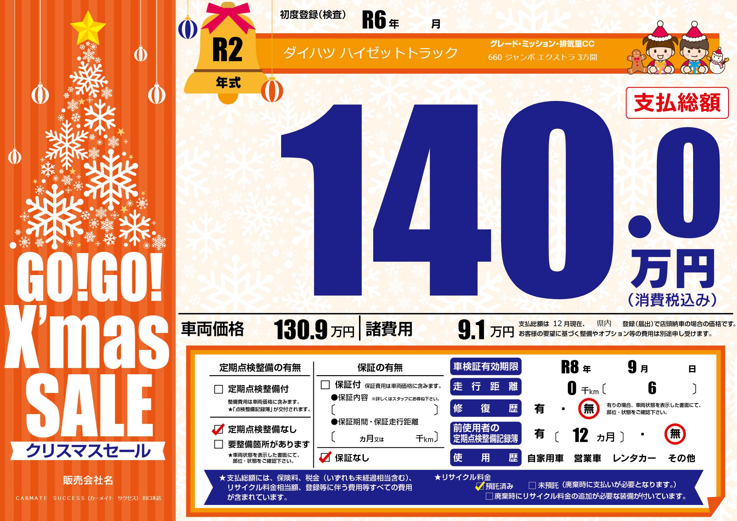 | 走行キロ | - | 初年度登録 | R6年---月 |