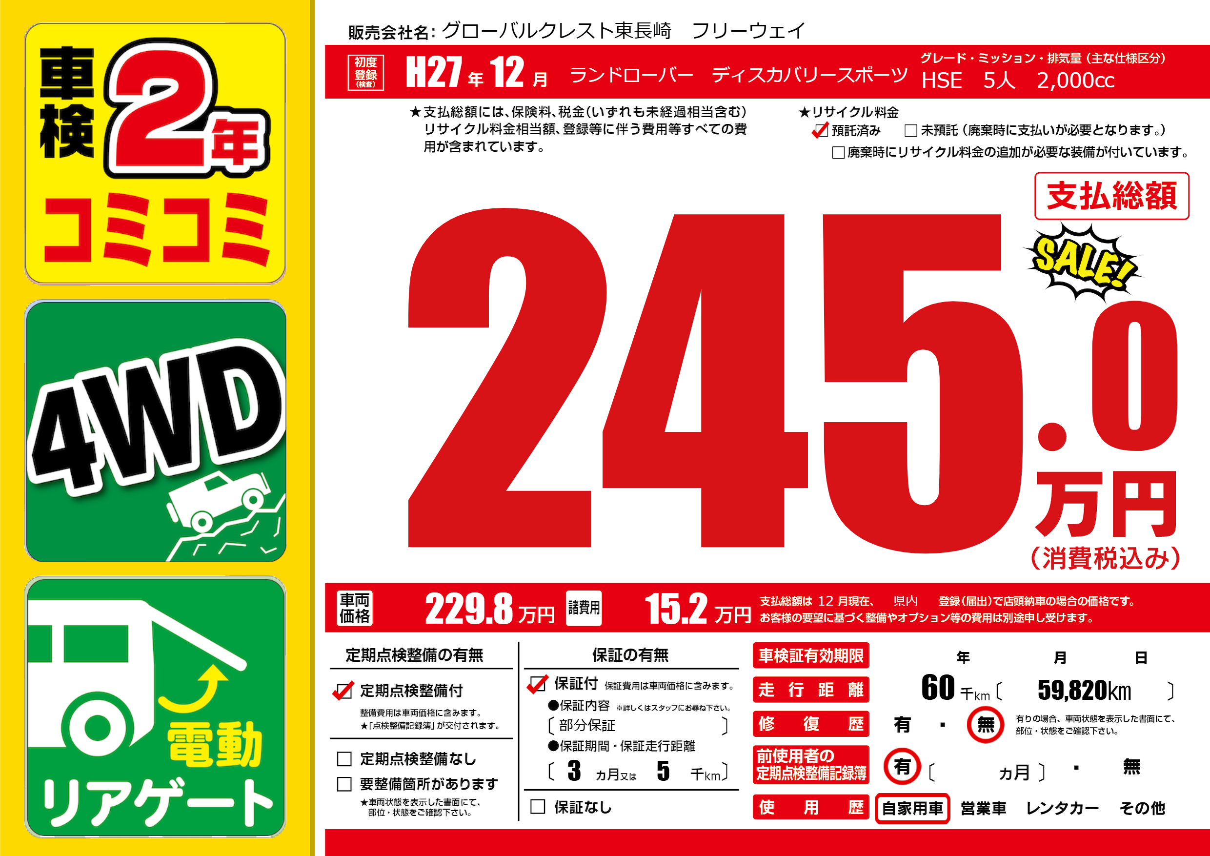 | 車名 | ランドローバー ディスカバリースポーツ | グレード ミッション 排気量 |