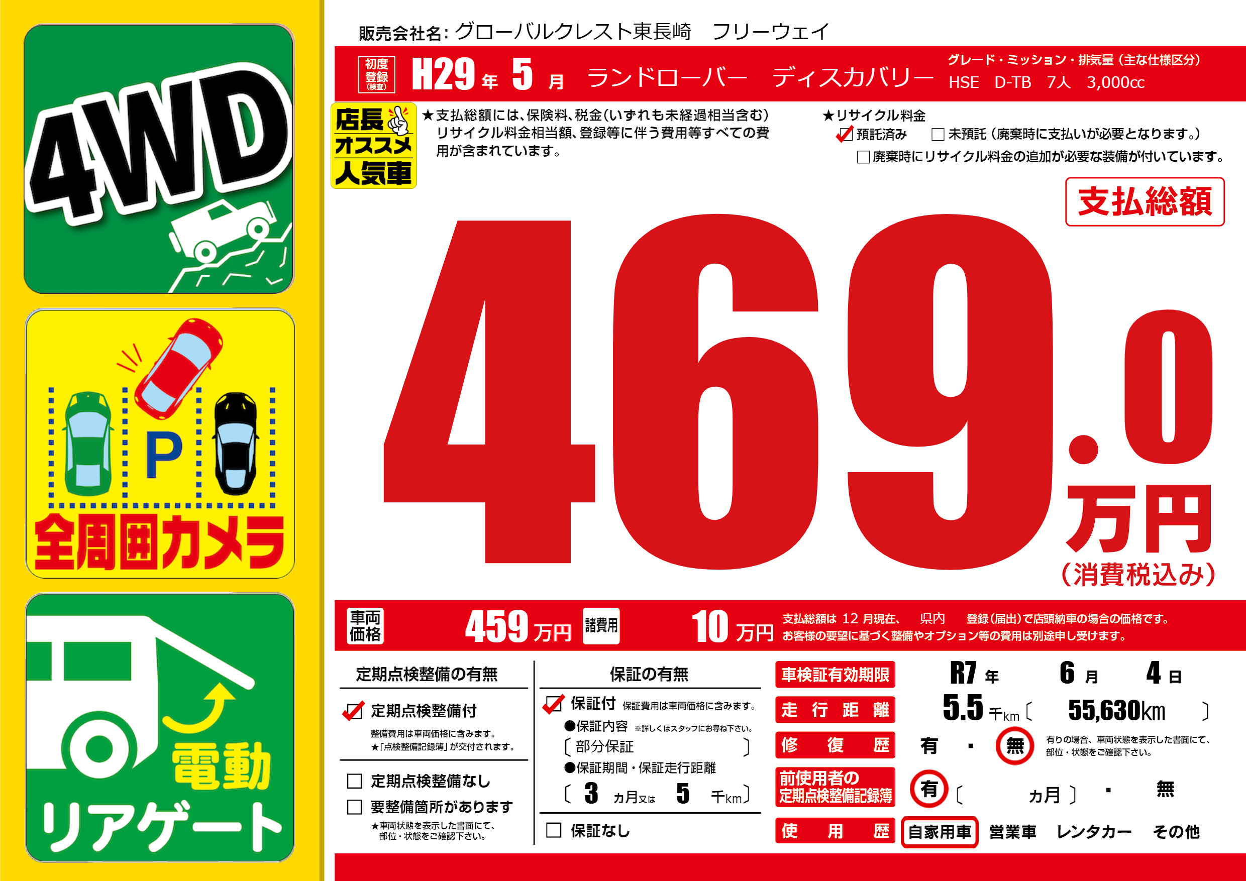 | 車名 | ランドローバー ディスカバリー | グレード ミッション 排気量 |