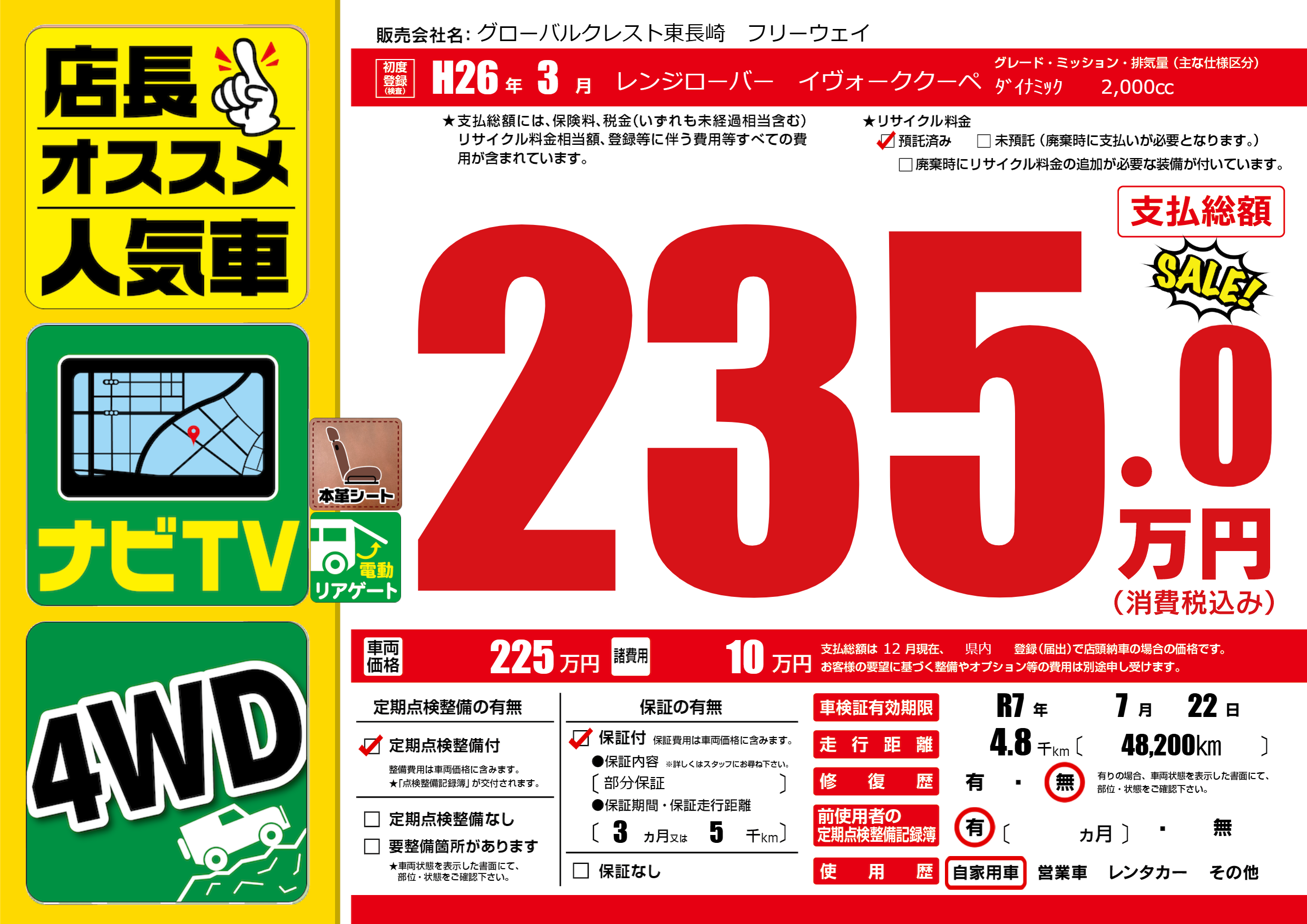 なし | 車検制限 | R7年7月22月 |