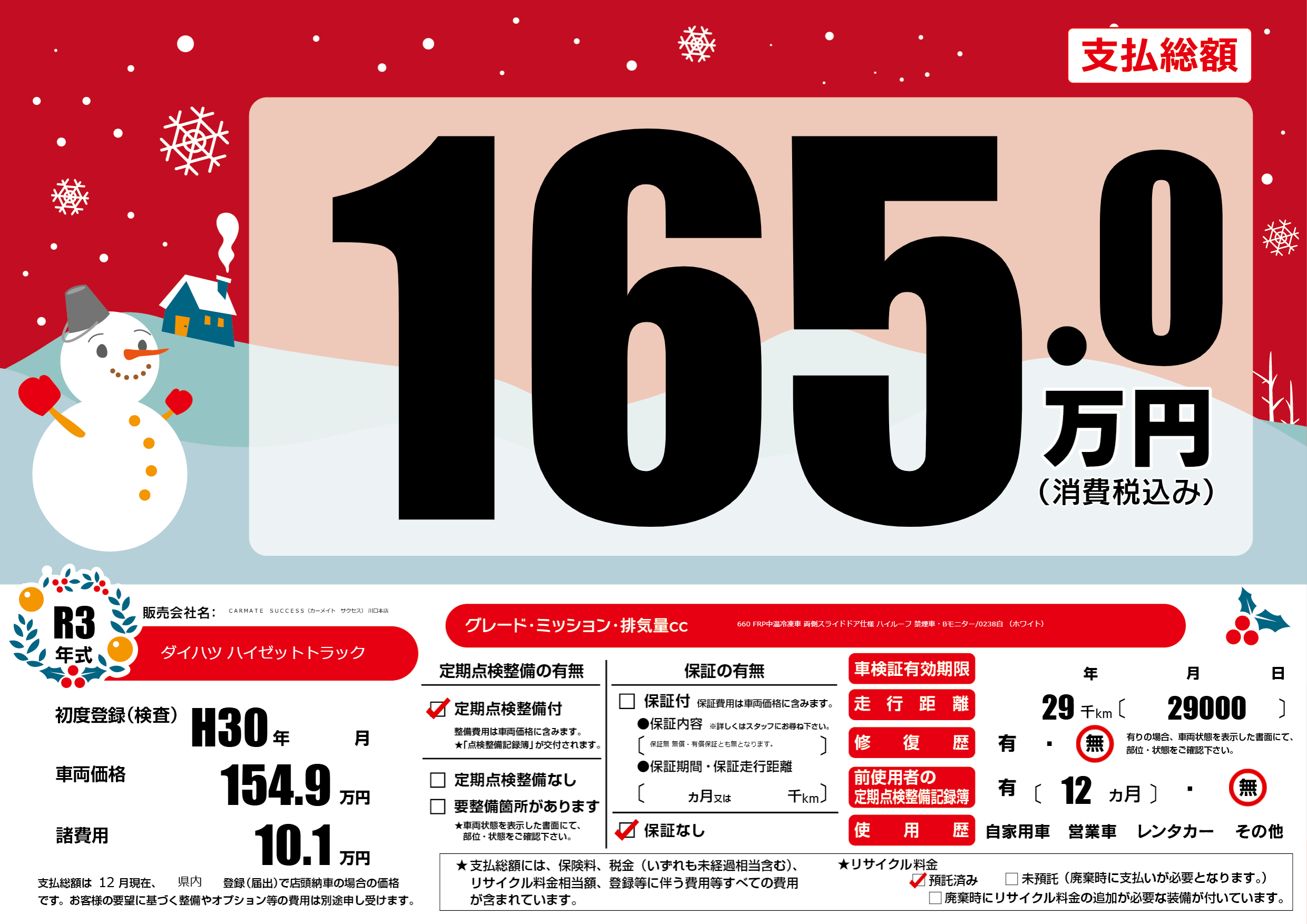 保証なし 保証内容(保証無 無償・有償保証とも無となります。) ---ヶ月または()千kmまで |