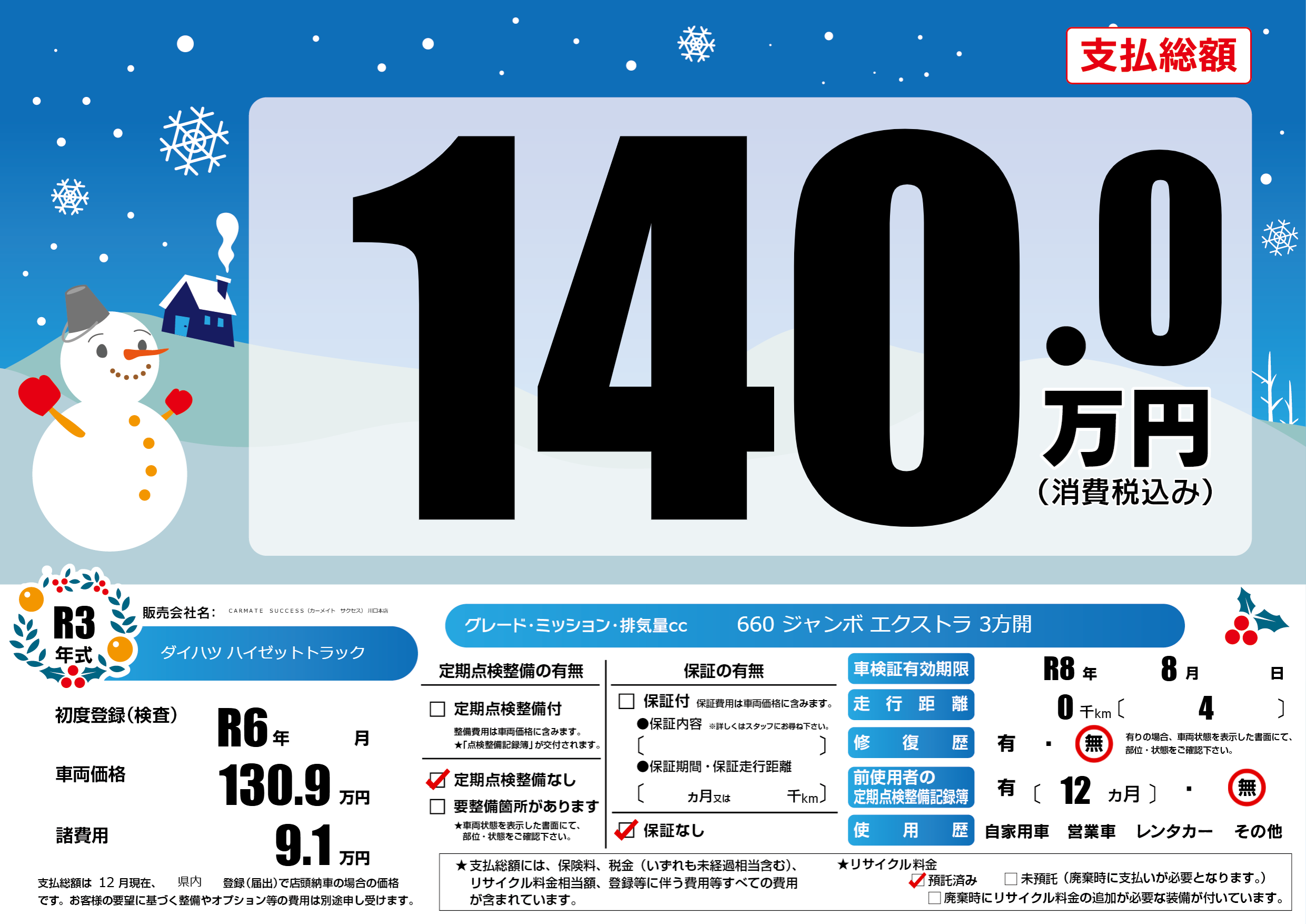 車検制限 R8年 8月 - 日