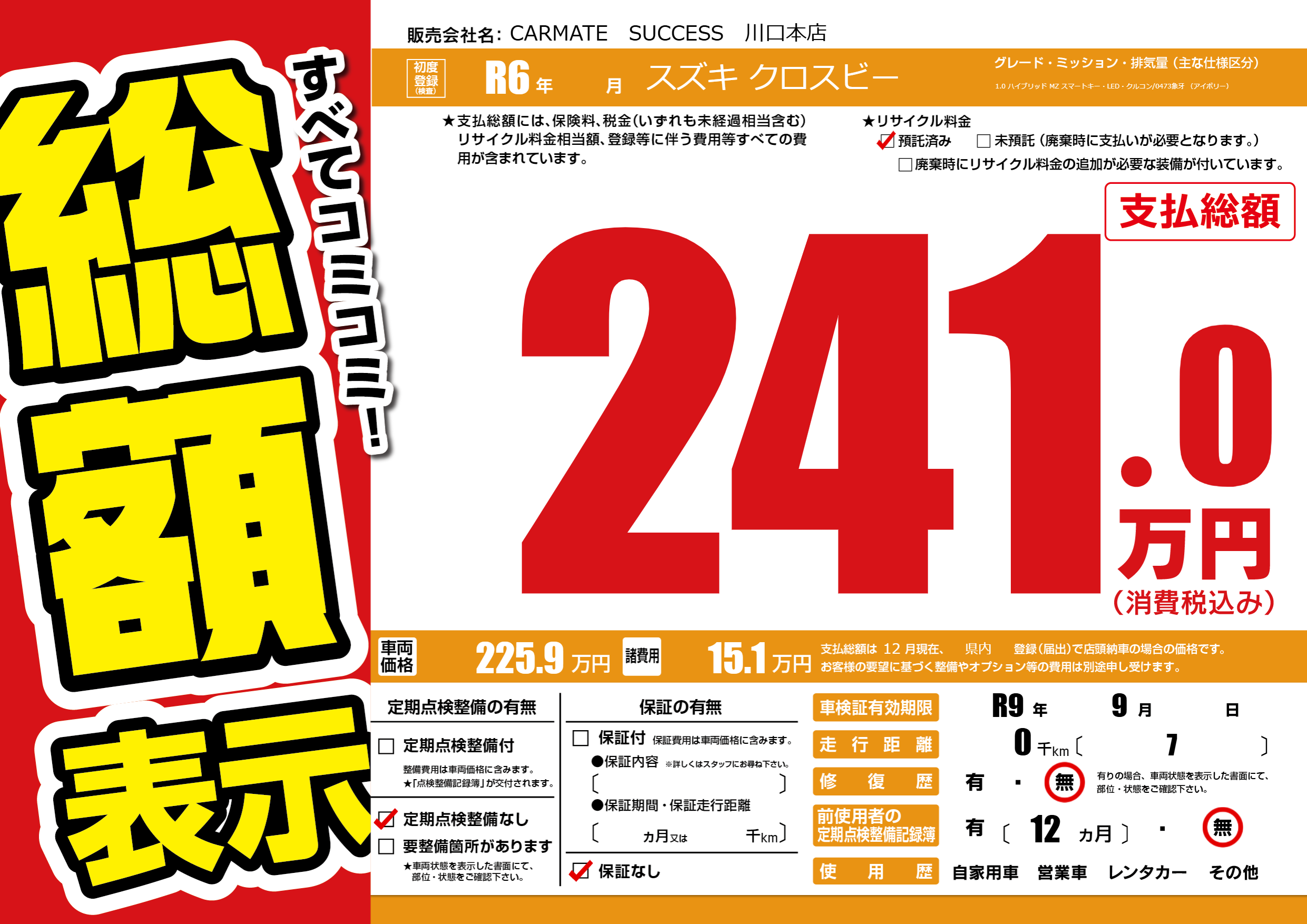 | 車名 | スズキ クロスビー | グレード ミッション 排気量 |