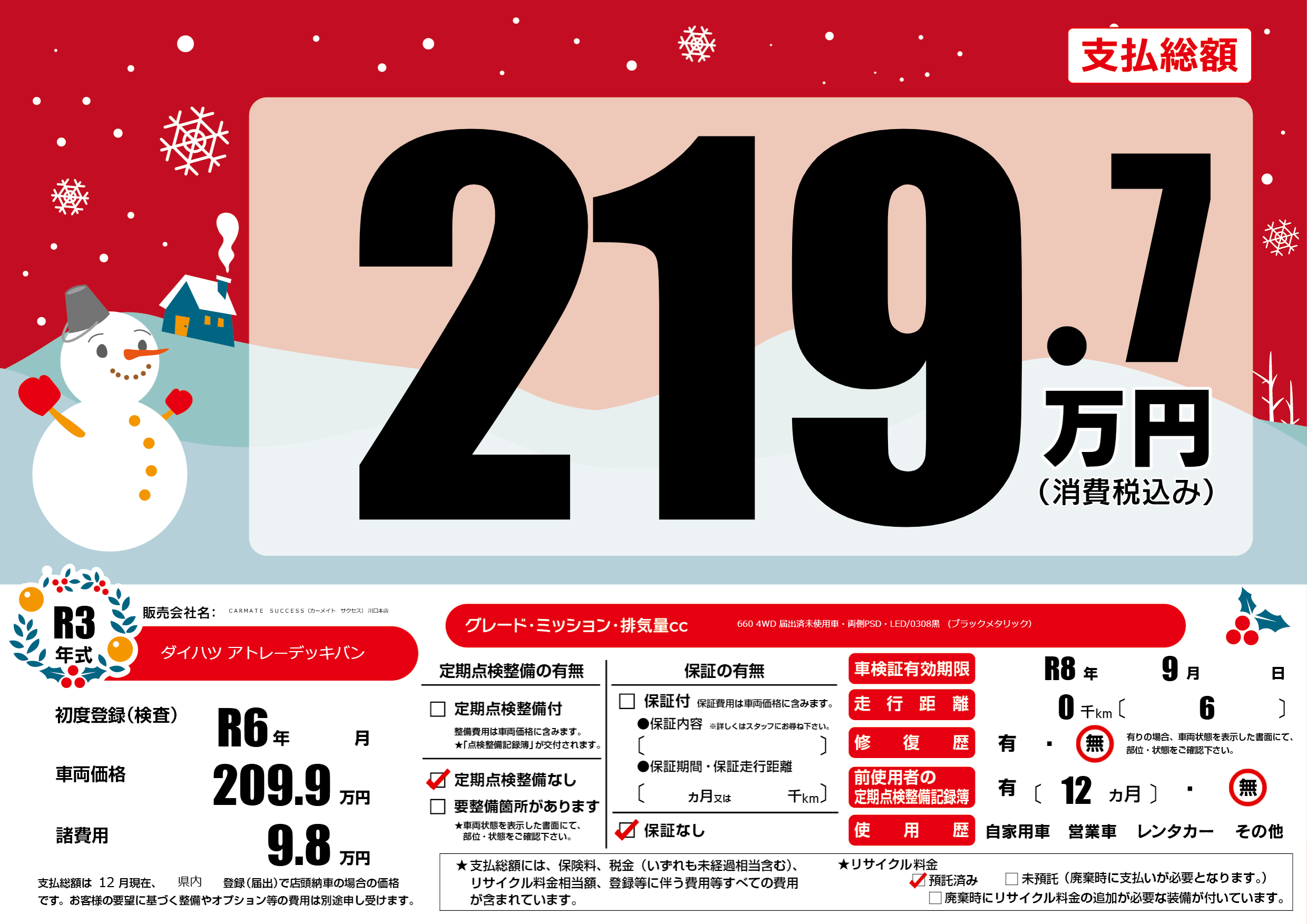 | 車名 | ダイハツ アトレーデッキバン | グレード ミッション 排気量 |