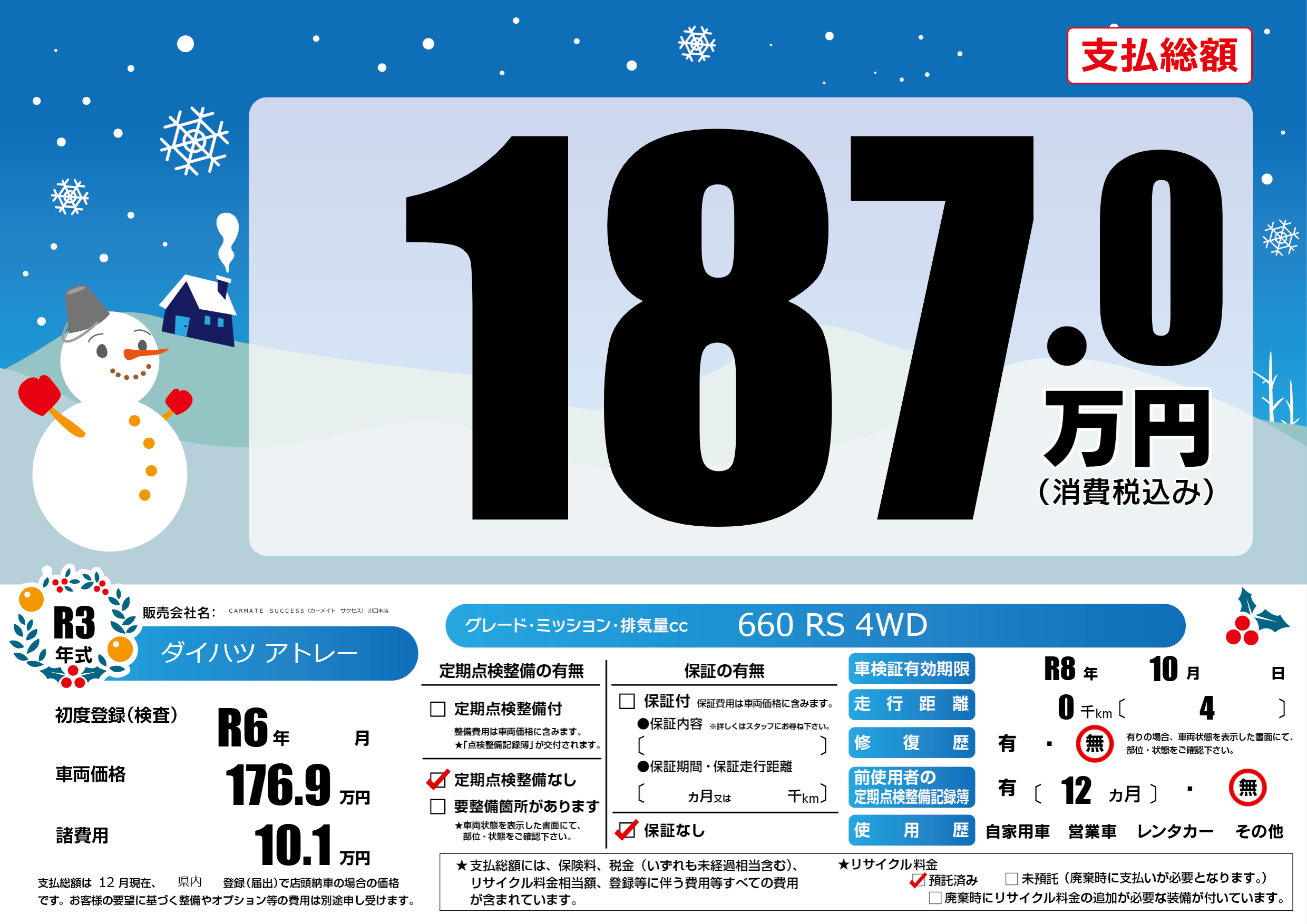 なし | 車検制限 | R8年10月---月 |