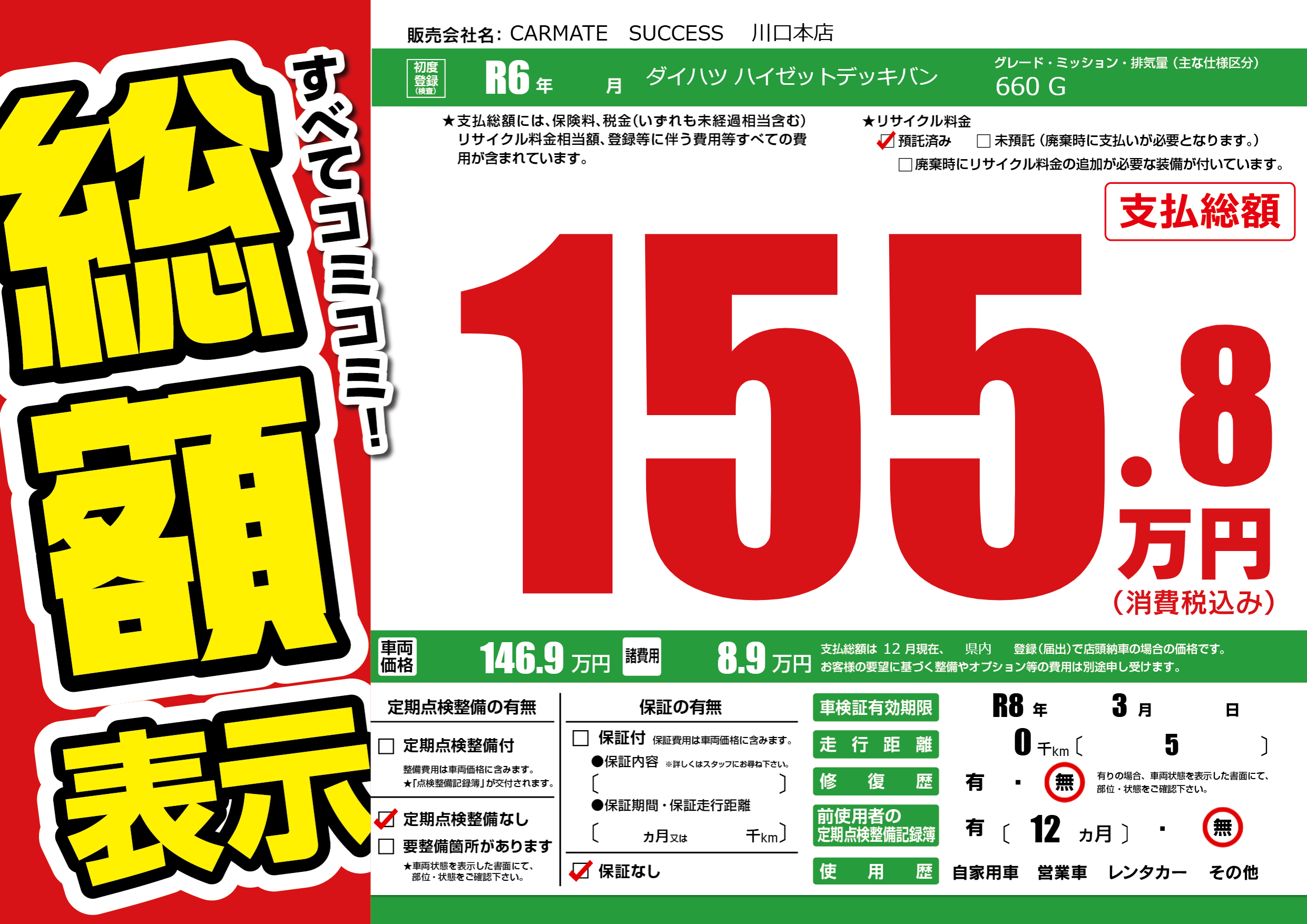 | 走行キロ | - | 初年度登録 | R6年---月 |