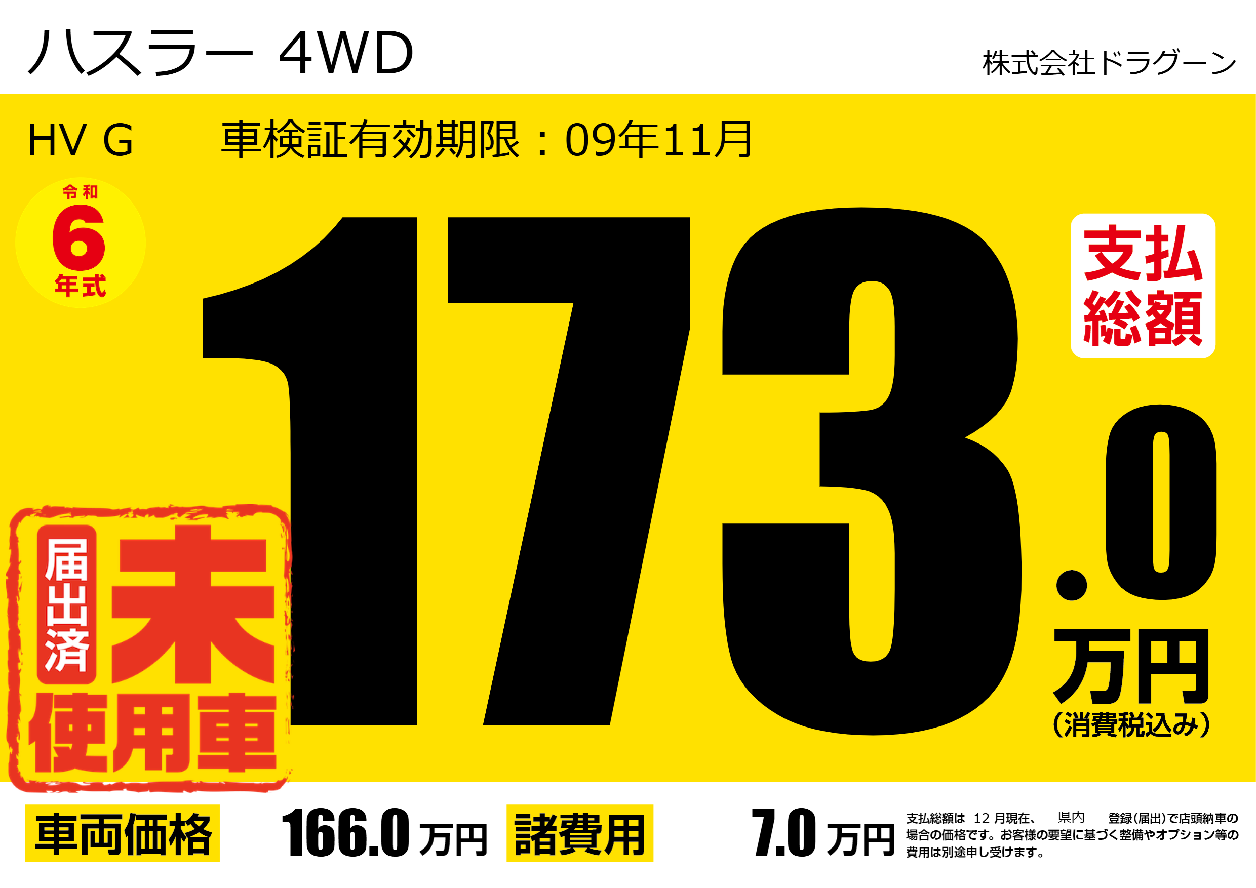 | 車名 | ハスラー 4WD | グレード ミッション 排気量 |