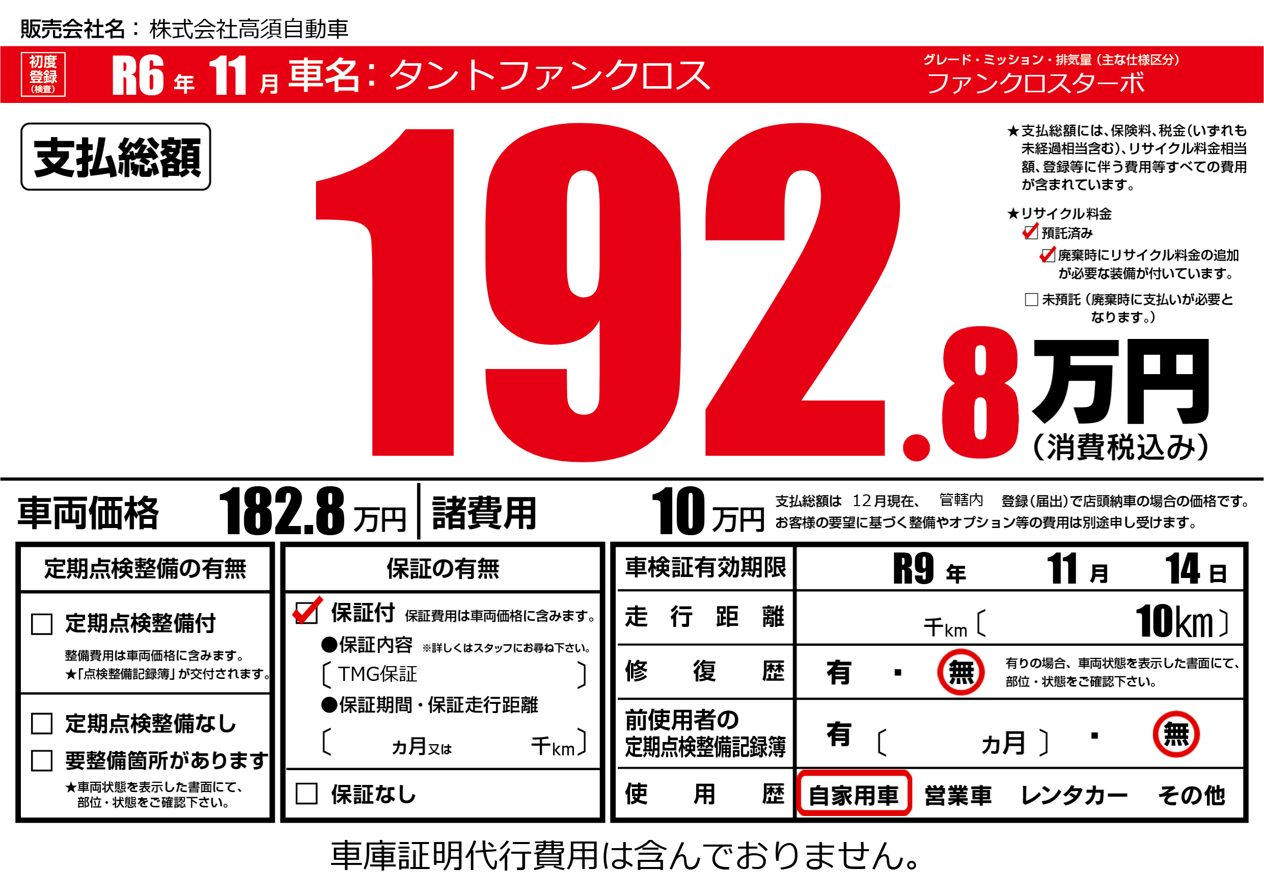 保証付き 保証内容(TMG保証) ---ヶ月または()千kmまで |