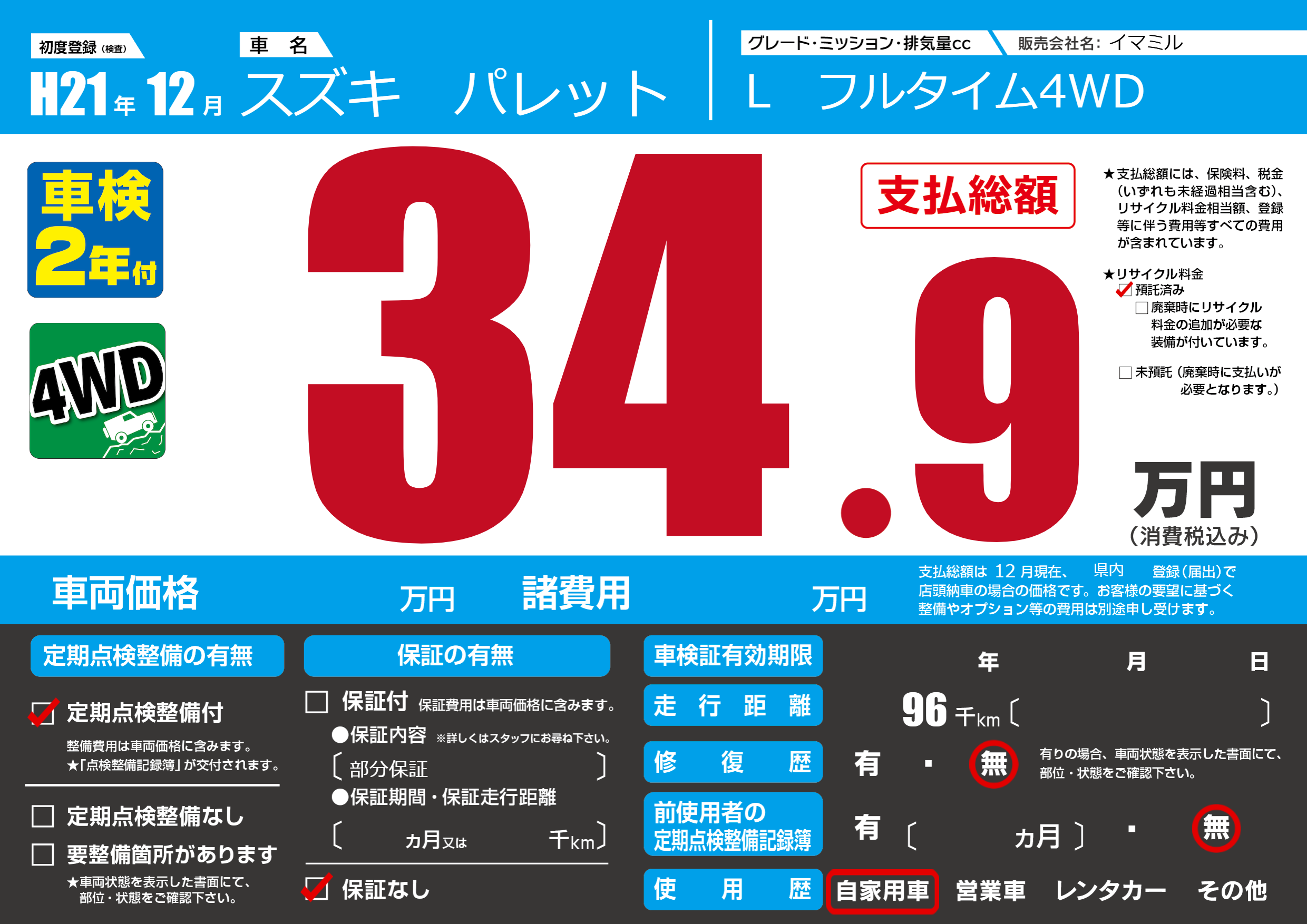 | 定期点検整備 | 定期点検整備あり | ||