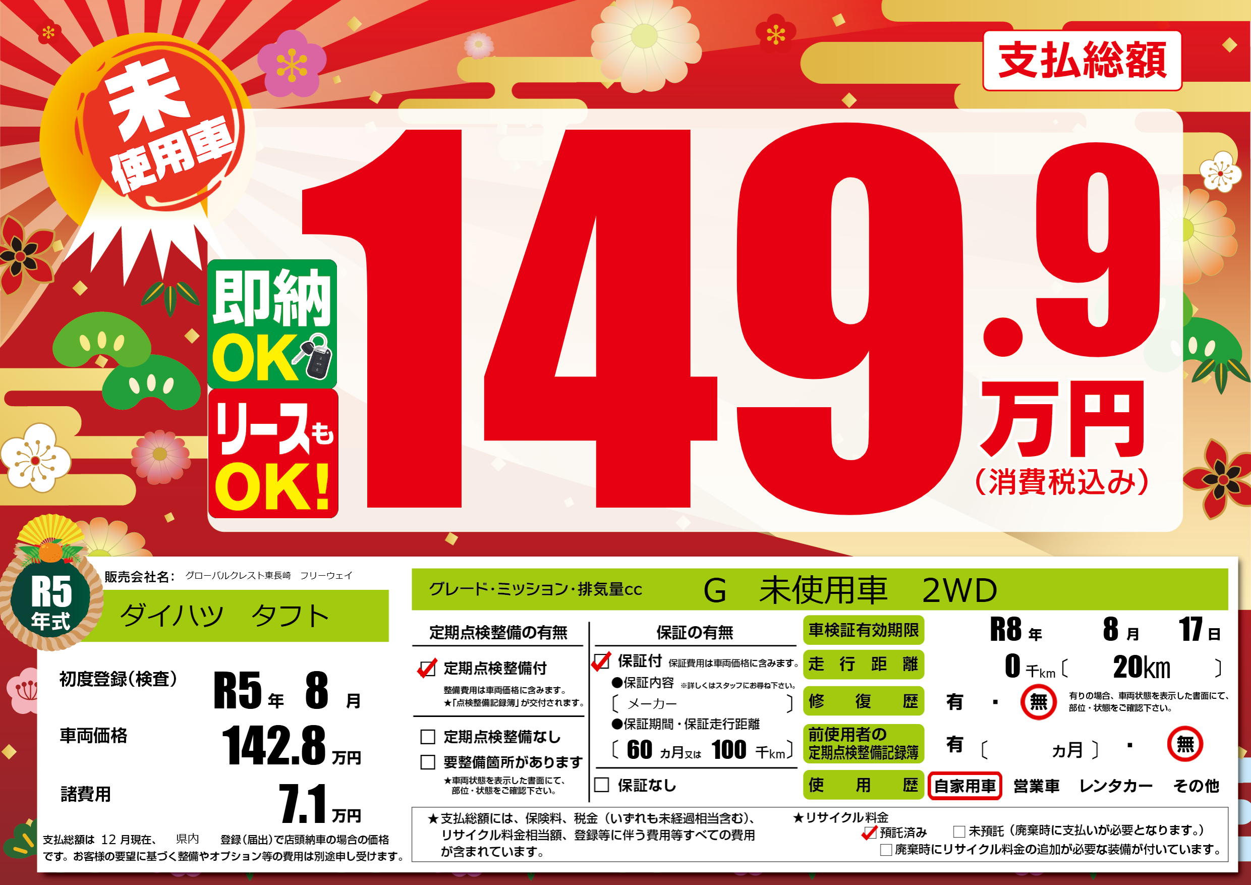 | 走行キロ | - | 初年度登録 | R5年8月 |