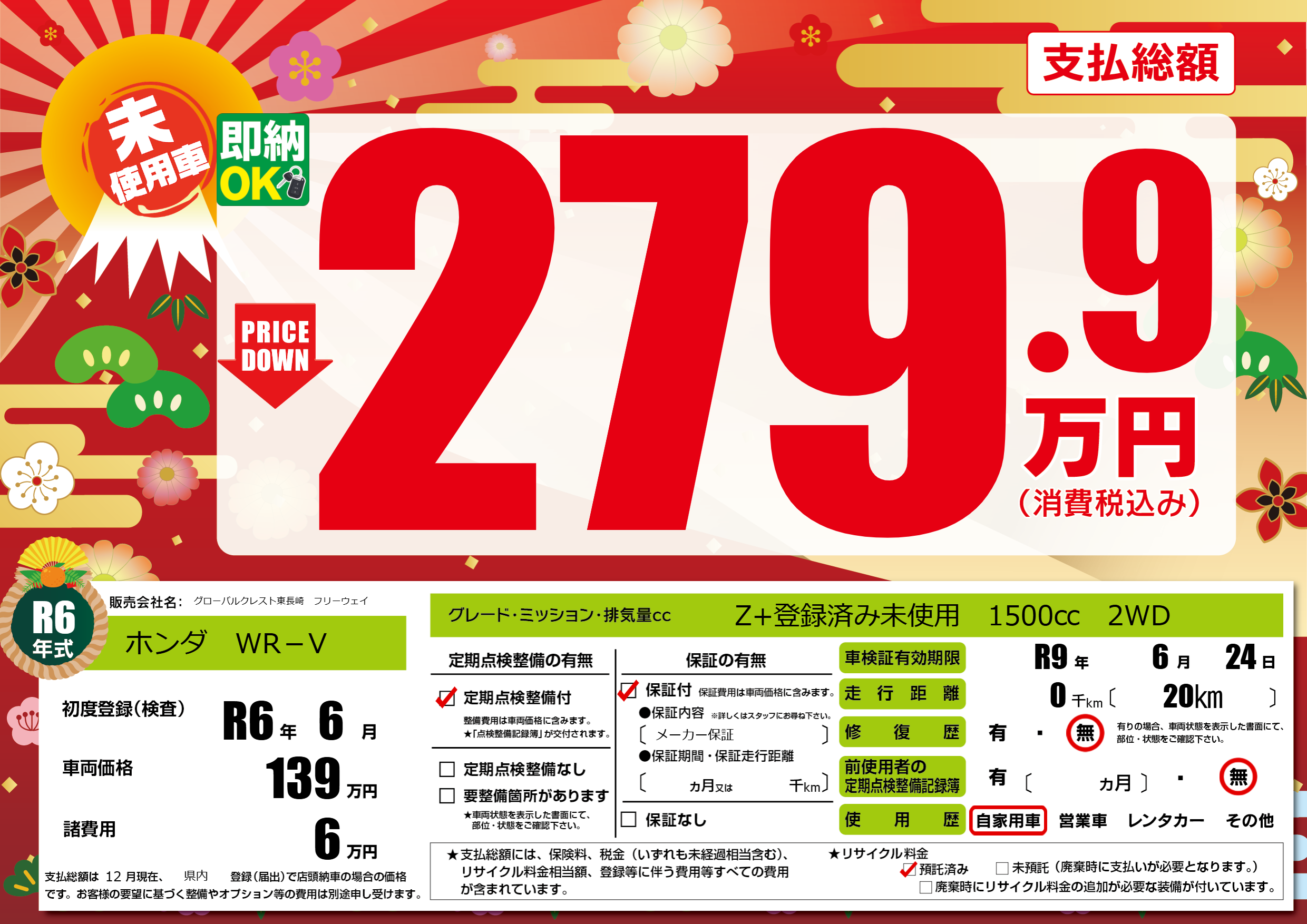 | 車名 | ホンダ WR-V | グレード ミッション 排気量 |